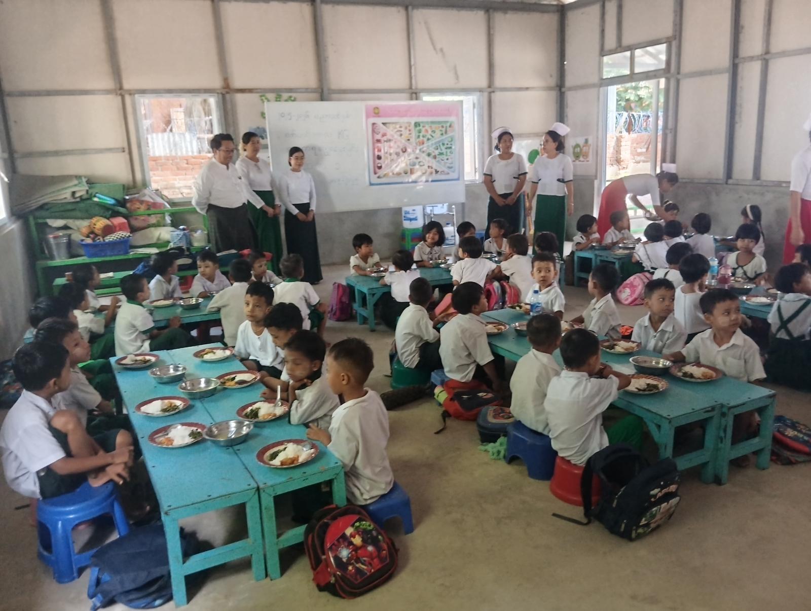 မန္တလေးတိုင်းဒေသကြီး၊ အမရပူရမြို့၊ လေးစုရပ်ကွက်ရှိ အမှတ် ၁ အခြေခံပညာအထက်တန်းကျောင်းရှိ KG ကျောင်းသား၊ ကျောင်းသူလေးများအား သတ်မှတ်ထားသော အအာဟာရအုပ်စု ၅ မျိုးစံညွှန်းအတိုင်း ချက်ပြုတ်ကျွေးမွေးခြင်းနှင့် ဝမ်းပျက်ဝမ်းလျှောရောဂါကာကွယ်ဆေး တတိယအကြိမ်တိုက်ကျွေးခြင်းကို စက်တင်ဘာ ၁၈ ရက်နေ့ နံနက် ၁၀ နာရီအချိန်က ပြည်သူ့ကျန်းမာရေးဦးစီးဌာနမှ ဆောင်ရွက်ခဲ့သည်။