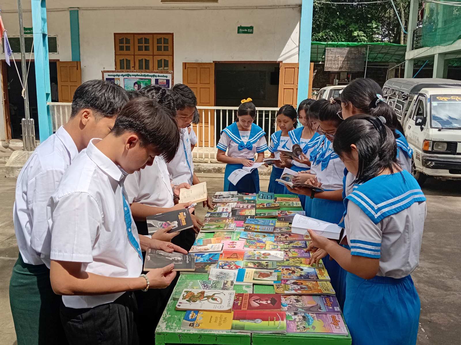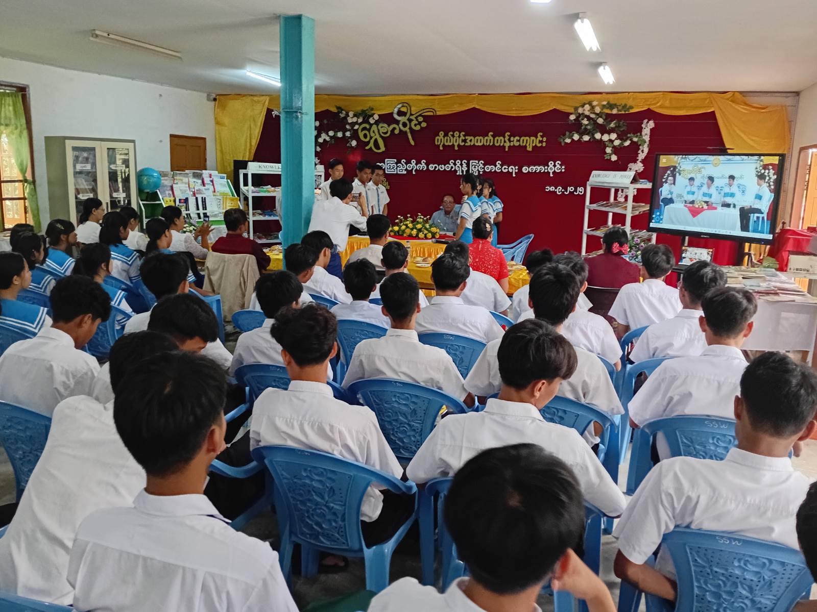 မန္တလေးတိုင်းဒေသကြီး၊ ပြင်ဦးလွင်ခရိုင်၊ ပြန်ကြားရေးနှင့်ပြည်သူ့ဆက်ဆံရေးဦးစီးဌာနမှ ကျောင်းစာကြည့်တိုက်များဖွံ့ဖြိုးတိုးတက်ရေးနှင့် စာဖတ်ရှိန်မြှင့်တင်ရေးလှုပ်ရှားမှုအဖြစ် စာရေးဆရာမ ပုညခင် ရေးသားသည့် “အထက်တန်းစားရေ” စာအုပ်ဖြင့် စကားဝိုင်း ဆွေးနွေးပွဲကို စက်တင်ဘာ ၁၈ ရက်နေ့ နံနက် (၉) နာရီခွဲက ရွှေစာဝိုင်းကိုယ်ပိုင်အထက်တန်းကျောင်းတွင် ကျင်းပခဲ့သည်။