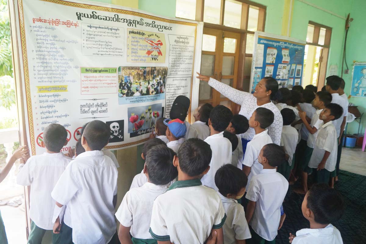 ဆက်လက်၍ ပြန်ကြားရေးနှင့်ပြည်သူ့ဆက်ဆံရေးဦးစီးဌာန ငါန်းဇွန်မြို့နယ်ရုံးမှ ဝန်ထမ်းများက ကျောင်းသား၊ ကျောင်းသူများအား မူးယစ်ဆေးဝါးအန္တရာယ်နှင့် သဘာဝဘေးအန္တရာယ် ကြိုတင်ကာကွယ်ရေး အသိပညာပေးနံရံကပ်စာစောင်များပြသခြင်း ဆောင်ရွက်ပေးခဲ့ရာ ကျောင်းသား၊ ကျောင်းသူများက စိတ်ဝင်စားစွာ လေ့လာဖတ်ရှုကြကြောင်း သိရသည်။