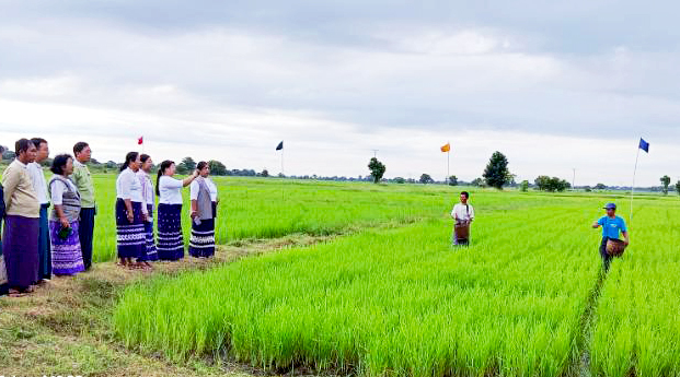 မန္တလေးတိုင်းဒေသကြီး၊ သာစည်မြို့နယ်၌ မိုးစပါးပန်းတိုင်အထွက်နှုန်းရရှိရေး ဓာတ်မြေဩဇာနှင့် သဘာဝမြေဩဇာ ၁:၃ အချိုးကျရောစပ်ကြဲပက်ခြင်း ကွင်းသရုပ်ပွဲကို စက်တင်ဘာ ၁၈ ရက်နံနက် ၇ နာရီက နှမ်းကန်ကျေးရွာ အုပ်စု ကွင်းအမှတ် ၁၈၈၄ တောင်သူဦးတိုးမောင်၏ မနောသုခ seeder စိုက်စနစ် စပါးစိုက်ကွင်းတွင် ပြုလုပ်ကြောင်း သိရသည်။