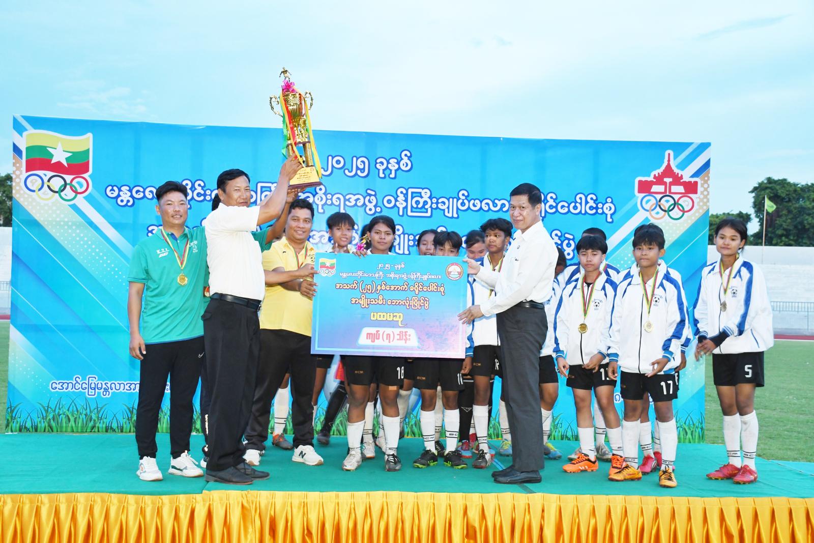 ယင်းနောက် ပထမဆုရရှိသည့် မိတ္ထီလာခရိုင်အသင်းအား တိုင်းဒေသကြီးအမျိုးသမီး အားကစားဆပ်ကော်မတီ နာယက၊တိုင်းဒေသ ကြီးဝန်ကြီးချုပ်၏ဇနီးက တစ်ဦးချင်း ဆုတံဆိပ်များ၊ တိုင်းဒေသကြီး ဝန်ကြီးချုပ်က ပထမဆုတံခွန်စိုက်ဆုဖလားနှင့်ငွေသားဆုများကို ချီးမြှင့်ပေးခဲ့ကြောင်း သိရသည်။