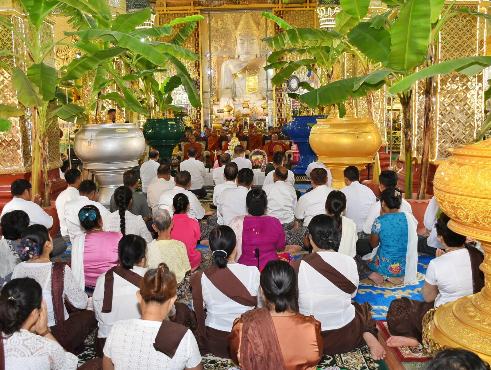 ဆက်လက်၍ တိုင်းဒေသကြီး ဝန်ကြီးချုပ်နှင့်တာဝန်ရှိသူများ၊ အလှူရှင်များက ဘုရားအမှူးရှိသော ဆရာတော်သံဃာတော် (၄၉) ပါးအားဆွမ်းဆန်စိမ်းနှင့်လှူဖွယ်ပစ္စည်းများ လောင်းလှူခဲ့ကြကြောင်း သိရသည်။