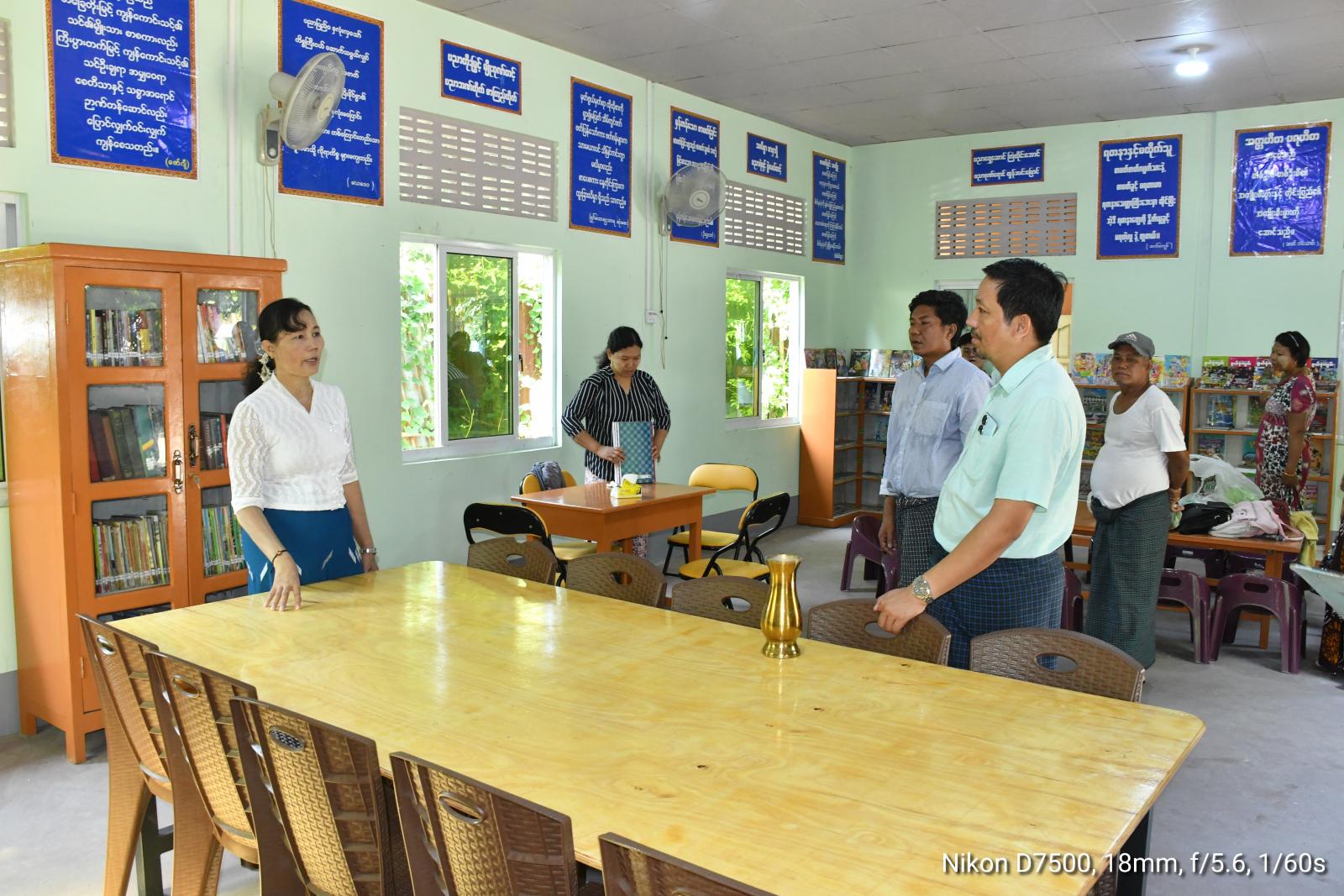 မန္တလေးတိုင်းဒေသကြီး အောင်မြေသာစံခရိုင် ပုသိမ်ကြီးမြို့နယ် နန္ဒာမြောက်ကျေးရွာရှိ “အလင်းရောင်” စာကြည့်တိုက်သစ် အမြန်ဖွင့်လှစ်နိုင်ရေး တိုင်းဒေသကြီး ပြန်ကြားရေးနှင့် ပြည်သူ့ဆက်ဆံရေးဦးစီးဌာန ညွှန်ကြားရေးမှူး ဒေါ်ဝေဝေဖြိုးနှင့်အဖွဲ့ဝင်များ စက်တင်ဘာ ၁၉ ရက် နံနက် ၉နာရီက ကွင်းဆင်းကြည့်ရှုသည်။