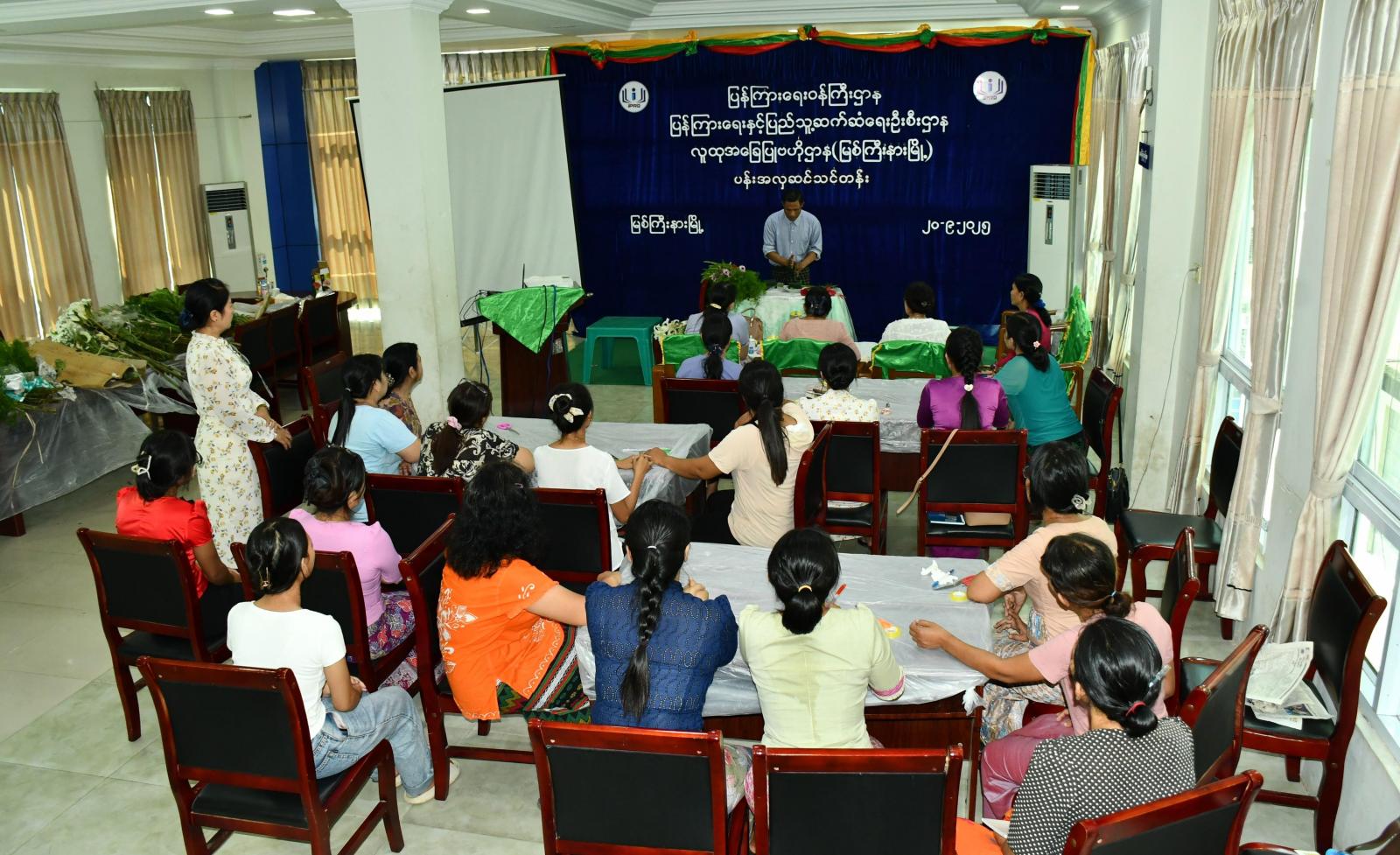 ကချင်ပြည်နယ်အတွင်းရှိ ဌာနဆိုင်ရာ ဝန်ထမ်းအမျိုးသမီးများ မိသားစုအပိုဝင်ငွေ ရရှိစေရေးနှင့် ဌာနဆိုင်ရာ အခမ်းအနားများတွင် မွန်းမန်ပြင်ဆင်ပေးနိုင်ရေးအတွက် အခမဲ့ပန်းအလှဆင် သင်တန်းကို ပြန်ကြားရေးနှင့်ပြည်သူ့ဆက်ဆံရေးဦးစီးဌာနက ကြီးမှူး၍ ယနေ့ နံနက် ၈ နာရီက မြစ်ကြီးနားမြို့ရှိ လူထုအခြေပြုဗဟိုဌာန (Community Centre) ဘက်စုံသုံးခန်းမ၌ ဖွင့်လှစ်ပေးခဲ့သည်။