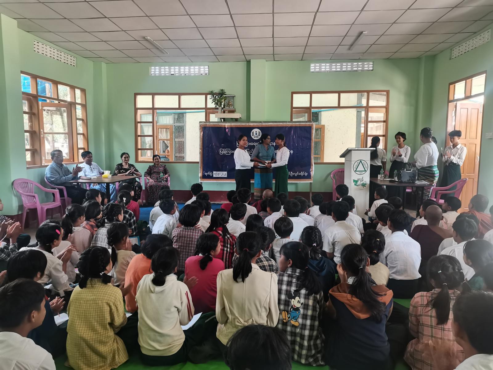 ဆက်လက်၍ မေးမြန်းဆွေးနွေးချက်များအား ပြန်လည်ဖြေကြားပေးခဲ့သော ကျောင်းသား/ ကျောင်းသူများအား တာ၀န်ရှိသူများက ဆုများ ပေးအပ်ချီးမြှင့်ခဲ့ပြီးနောက် ပြင်ဦးလွင်ခရိုင် ပြန်ကြားရေးနှင့်ပြည်သူ့ဆက်ဆံရေးဦးစီးဌာနမှ တာ၀န်ရှိသူများသည် ကျောင်းသား/ကျောင်းသူ များအား အသိအလိမ္မာရဖွယ် သုတ၊ရသပုံပြင်များ ဖတ်ကြားပြခြင်း၊ အသိပညာပေး နံရံကပ်စာစောင်များ၊ သုတ၊ ရသစာအုပ်များ ခင်းကျင်းပြသပေးခဲ့သည်။