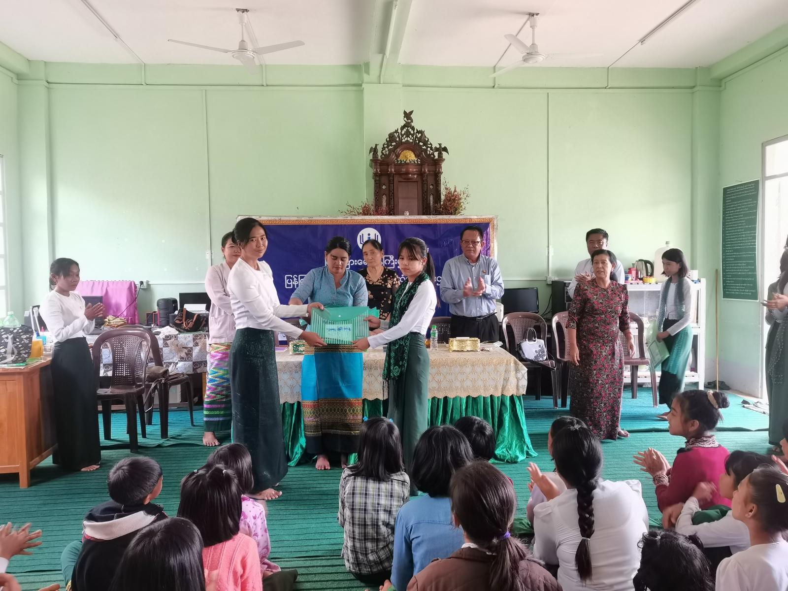 ဆက်လက်၍ မေးမြန်းဆွေးနွေးချက်များအား ပြန်လည်ဖြေကြားပေးခဲ့သော ကျောင်းသား/ ကျောင်းသူများအား ပီတိအပြုံးပညာရေးဖွံ့ဖြိုးမှုအဖွဲ့မှ အတွင်းရေးမှူး ဒေါ်မြအေးငြိမ်းက ဆုများ ပေးအပ်ချီးမြှင့်ခဲ့ပြီးနောက် ခရိုင်ပြန်ကြားရေးနှင့်ပြည်သူ့ဆက်ဆံရေးဦးစီးဌာနမှ တာ၀န် ရှိသူများသည် ကျောင်းသား/ကျောင်းသူများအား အသိအလိမ္မာရဖွယ် သုတ၊ ရသပုံပြင်များ ဖတ်ကြားပြခြင်း၊ အသိပညာပေးနံရံကပ်စာစောင်များ၊ သုတ၊ ရသစာအုပ်များ ခင်းကျင်းပြသသည်။ အဆိုပါဟောပြောပွဲသို့ ဆရာ၊ ဆရာမများ၊ ကျောင်းသား၊ကျောင်းသူများ တက်ရောက်ခဲ့သည်။