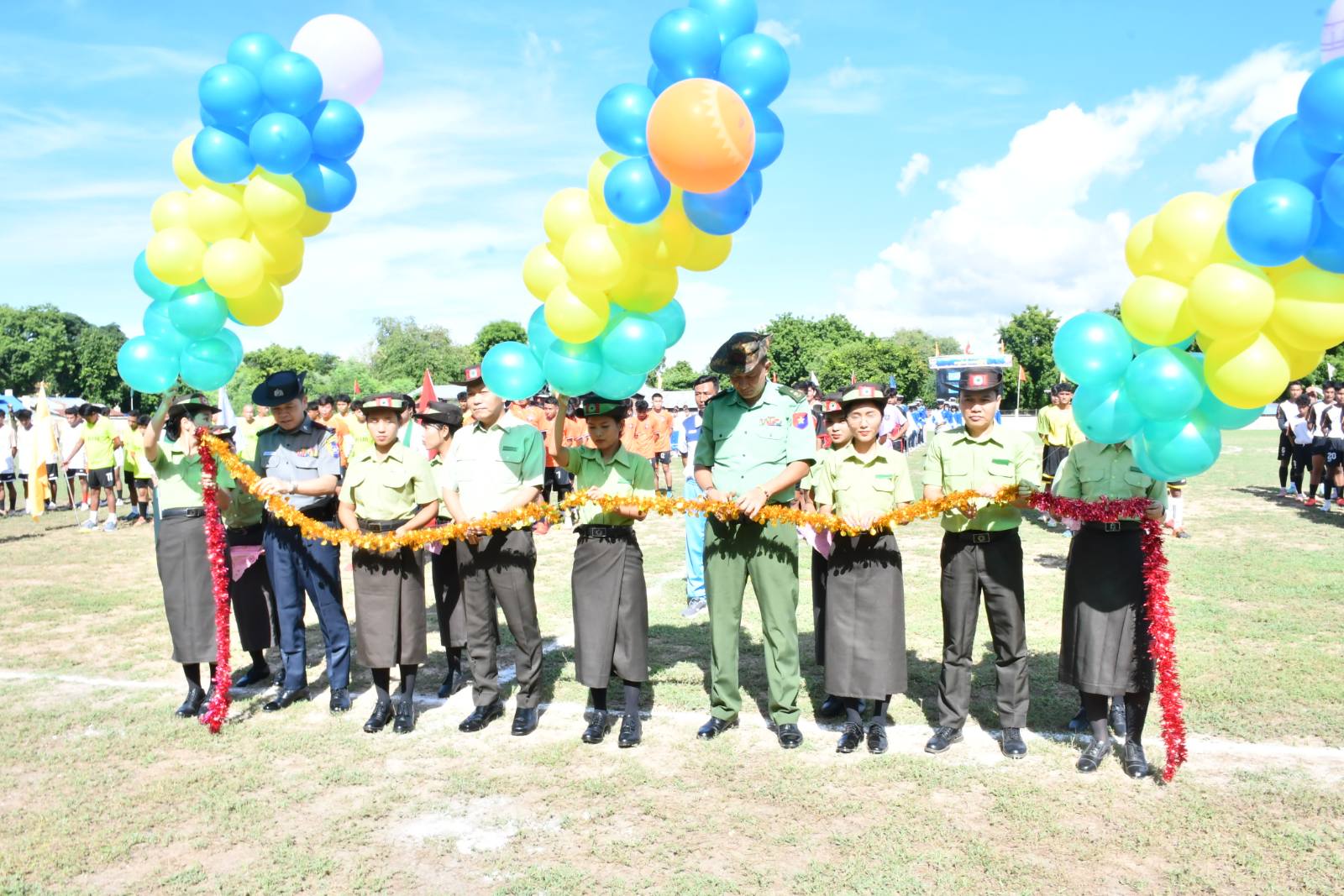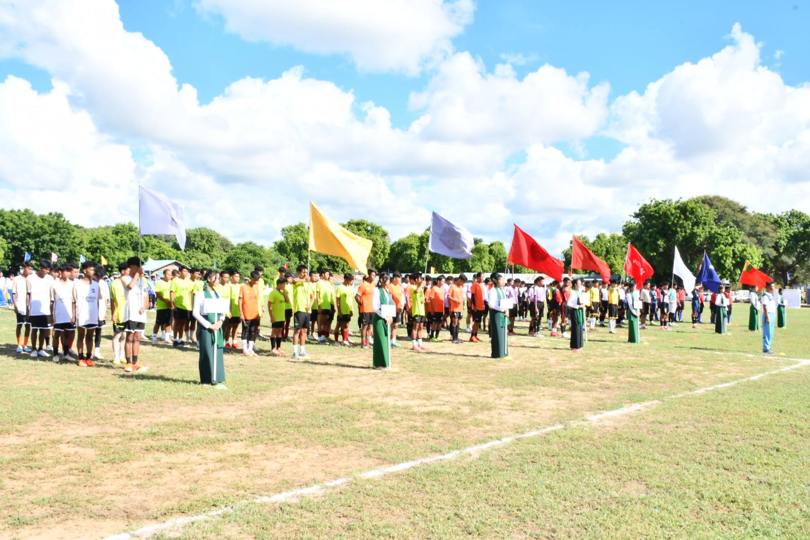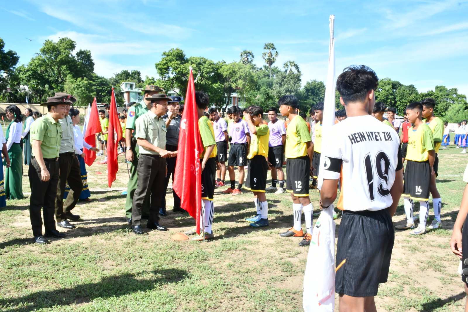 ထို့နောက် မြို့နယ်စီမံ ခန့်ခွဲရေးနှင့်အုပ်ချုပ်ရေးကော်မတီ ဥက္ကဋ္ဌ က အမှာစကား ပြောကြားသည်။ ဆက်လက်၍ အားကစားသမားများ သစ္စာအဓိဌာန်ရွတ်ဆိုကြကာ ဘင်ခရာအဖွဲ့နှင့်ပန်းပွားအဖွဲ့ ကျောင်းသားကျောင်းသူများ၊ အေရိုးဗစ်ကျောင်းသူလေးများမှ ကပြဖျော်ဖြေကြကာ အလွတ်တန်းဘောလုံးပြိုင်ပွဲ ယှဉ်ပြိုင်ခဲ့ကြောင်းသိရသည်။