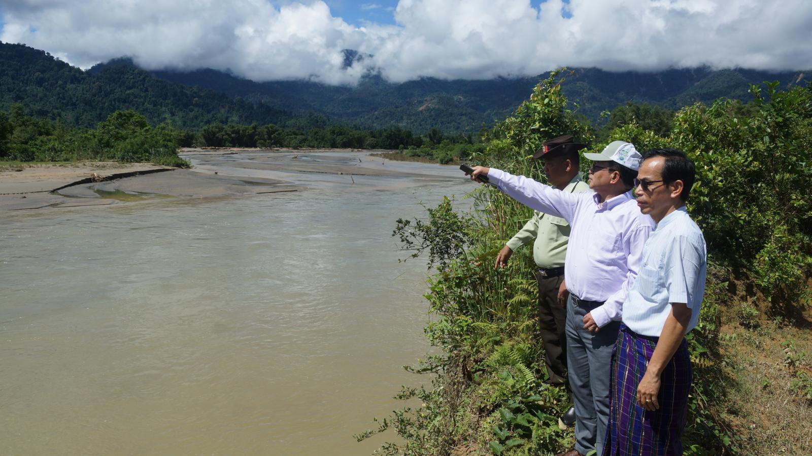ကချင်ပြည်နယ်အစိုးရအဖွဲ့ဝင် ပြည်နယ်သယံဇာတရေးရာဝန်ကြီး ဦးတိန့်ဆောင်သည် ခရိုင်စီမံခန့်ခွဲရေးနှင့် အုပ်ချုပ်ရေးကော်မတီဥက္ကဋ္ဌ ဦးစိုးထွန်း၊ မြို့နယ်စီမံခန့်ခွဲရေးနှင့် အုပ်ချုပ်ရေးကော်မတီဥက္ကဋ္ဌ ဦးကျော်ကျော်လွင်နှင့် တာဝန်ရှိသူများနှင့်အတူ စက်တင်ဘာ(၂၂)ရက် နံနက်ပိုင်းက ပူတာအိုမြို့နယ် မန်စေခွန် ကျေးရွာအုပ်စုအတွင်း ယခုလဆန်းပိုင်းက မိုးအဆက်မပြတ်ရွာသွန်းမှုကြောင့် တောင်ကျချောင်းရေများမြင့်တက်လာပြီး ရေကြီးရေလျှံဖြစ်ပေါ်ခဲ့ရာ အဆိုပါနမ့်ပလန့်ချောင်းနှင့်ပါတိတ်ချောင်း ရေကြီးရေလျှံမှုကြောင့် မိုးစပါးလယ်မြေများ၊ စိမ့်စမ်းရေသွယ်ပိုက်လိုင်းများနှင့် နမ့်ပလန့်ချောင်းကူးသံကူကွန်ကရစ်တံတား ကမ်းကပ်ခုံပျက်စီးခဲ့မှုအားသွား ရောက်ကြည့်ရှုစစ်ဆေးသည်။