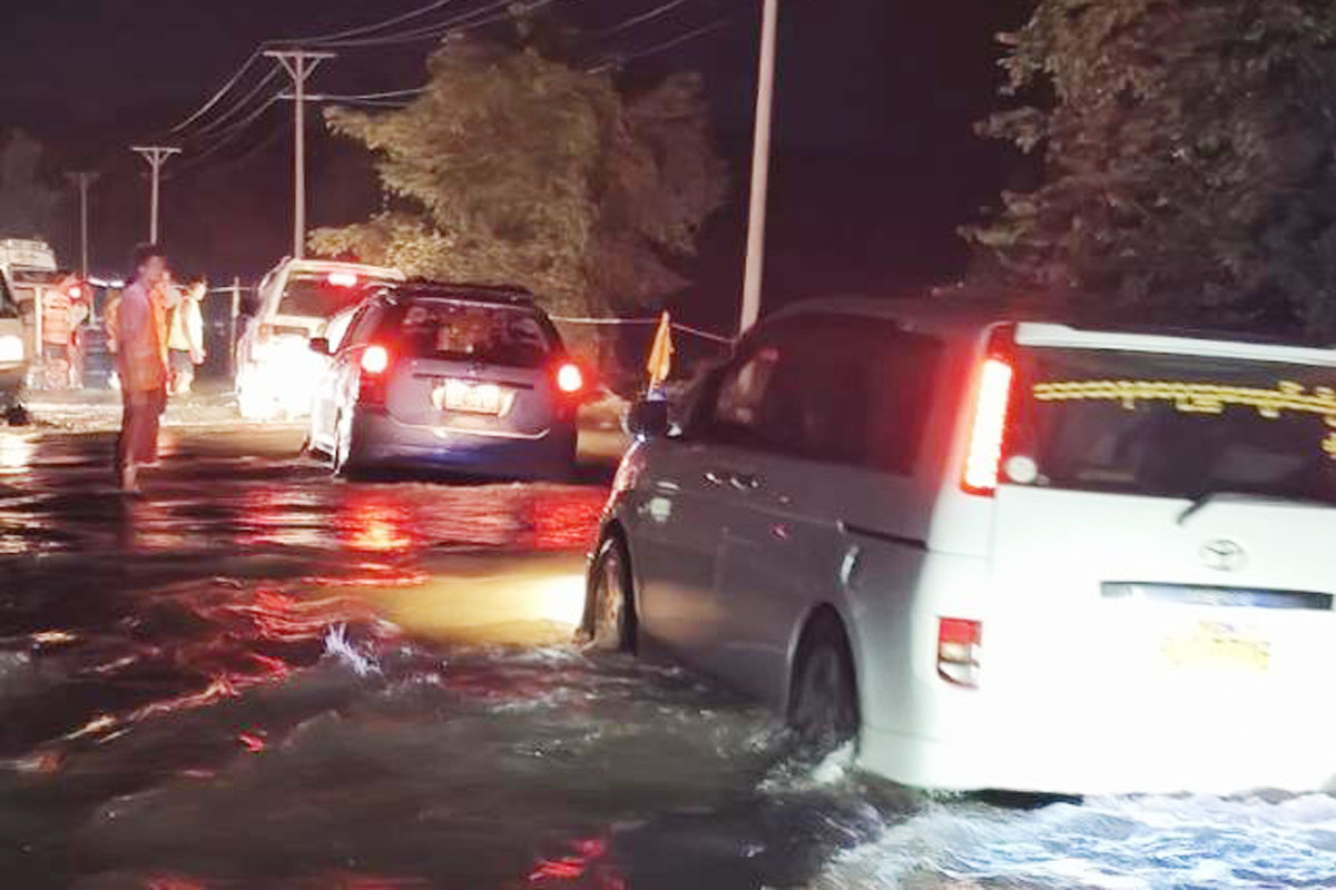 မန္တလေးတိုင်းဒေသကြီး၊ ကျောက်ပန်းတောင်းမြို့နယ် ကြက်မောက်တောင်ရေလှောင်တမံ၏ ရေပိုလွှဲမှ ရေကျော်စီးဆင်းမှုကြောင့် ကျောက်ပန်းတောင်း-မိတ္ထီလာသွား ကမ်းလမ်းတွင် ရေကျော်မှုဖြစ်ပွားခဲ့ပြီး အဆိုပါ ရေစီးဆင်းမှု အရှိန်ကြောင့် ကိုင်းကျေးရွားအနီး မိုင်တိုင်အမှတ် ၅၁/၄ မှ မိုင်တိုင်အမှတ် ၅၁/၇ အတွင်းရှိ တံတားအမှတ် ၅/၅၂ မှာ အောက်တိုဘာ (၃)ရက်နေ့ နံနက်(၁၀:၄၅)နာရီက ကျိုးကျမှု ဖြစ်ပွားကာ မော်တော်ယာဉ်များ ဖြတ်သန်းသွားလာမရတော့သဖြင့် ယာယီလမ်း ပိတ်ဆို့ကာ ကျောက်ဖြည့် ပြုပြင်မှုများကို လမ်းဦးစီးဌာန ခရိုင်နှင့် မြို့နယ်တာဝန်ရှိသူ များက သက်ဆိုင်ရာဌာနများနှင့် ပူးပေါင်း၍ မွန်းလွဲ(၁:၁၅)နာရီမှစကာ အစောတလျင် ဆောင်ရွက်ခဲ့ကြရာ၊ ညနေ(၆:၂၀)နာရီတွင် မော်တော်ယာဉ်ကြီး/ယာဉ် ငယ်များ ပြန်လည် ဖြတ်သန်းသွားလာနိုင်ပြီဖြစ်ကြောင်း သိရသည်။