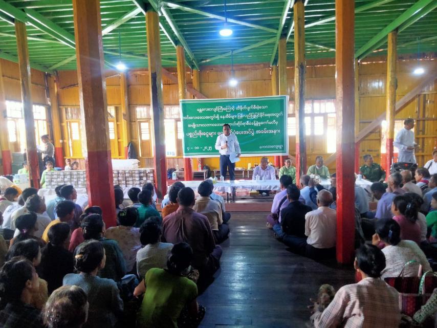 ရှေးဦးစွာ ရှမ်းပြည်နယ် လမ်းပန်းဆက်သွယ်ရေးဝန်ကြီး ဦးနေဝင်းအောင်နှင့် တိုင်းရင်းသားရေးရာဝန်ကြီး ဦးအောင်ကြည်ဝင်းတို့က မန္တလေးငလျင်ကြီးကြောင့် ထိခိုက်ပျက်စီးခဲ့သည့် အင်းလေးဒေသအတွင်းရှိနေအိမ်များ ပြန်လည်ပြုပြင်နိုင်ရေးအတွက် ပစ္စည်းဖိုးငွေများ ထောက်ပံ့ ပေးအပ်ခြင်းနှင့်စပ်လျဉ်း၍ အမှာစကားပြောကြားသည်။ ထို့နောက်ပြည်နယ်ဝန်ကြီးများနှင့် တာဝန်ရှိသူများက နေအိမ်များထိခိုက်ပျက်စီးခဲ့သည့် ဒေသခံပြည်သူများသို့ ပစ္စည်းဖိုးငွေများ ထောက်ပံ့ပေးအပ်ခဲ့ကြသည်။