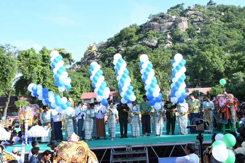 မန္တလေးတိုင်းဒေသကြီး၊ ကျောက်ဆည်ခရိုင်၊ ကျောက်ဆည်မြို့နယ်တွင် နှစ်စဉ်ကျင်းပမြဲဖြစ်သော ရိုးရာဆင်လှူပွဲတော်နှင့်ဆင်အကအလှပြိုင်ပွဲ ဖွင့်ပွဲအခမ်းအနားကို ယနေ့နံနက်(၈)နာရီက ရွှေသာလျောင်းတောင်ခြေ ဆင်အကအလှပြိုင်ကွင်းဗဟိုမဏ္ဍတွင် ကျင်းပပြုလုပ်ရာ ကျောက်ဆည်တပ်နယ်မှူး ဗိုလ်မှူးချုပ်တိုးမြင့်ကျော်၊ တပ်မတော်အဆင့်မြင့်နည်းပညာသုံး ဆက်သွယ်ရေးနှင့် အီလက်ထရောနစ် ပစ္စည်းများထုတ်လုပ်ရေး သုတေသနဌာနချုပ်မှ ဗိုလ်မှူးချုပ် မင်းနိုင်ဝင်း၊ ကျောက်ဆည်ခရိုင် စီမံခန့်ခွဲရေးနှင့်အုပ်ချုပ်ရေးကော်မတီ ဥက္ကဋ္ဌ ဦးဇော်ဟိန်းအောင်၊ ကျောက်ဆည်မြို့နယ်စီမံခန့်ခွဲရေးနှင့် အုပ်ချုပ်ရေးကော်မတီ ဥက္ကဋ္ဌ ဦးထိုက်ထိုက်ဇော်၊ ကျောက်ဆည်အသင်း(ရန်ကုန်)ဥက္ကဌ အငြိမ်းစား ဗိုလ်မှူးကြီးမျိုးမြင့်၊ မြို့မိ၊မြို့ဖ ဦးကျော်ထူးတို့က ဖဲကြိုးဖြတ်ဖွင့်လှစ်ပေးခဲ့သည်။