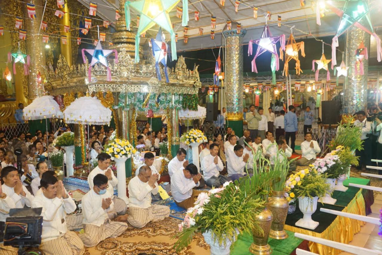 ရွှေတိဂုံစေတီတော်ဘဏ္ဍာတော်ထိန်း ဂေါပကအဖွဲ့က ကြီးမှူးကျင်းပသည့် ၁၃၈၇ ခုနှစ် သီတင်းကျွတ်လပြည့်နေ့အကြို (အဖိတ်နေ့) ရွှေတိဂုံစေတီတော်မြတ်ကြီးအား လျှပ်စစ်မီးစေတီများ လှည့်လည်ပူဇော်ဆက်ကပ်ပွဲနှင့်ဆီမီး (၁၁၁၁၁) စုပေါင်းထွန်းညှိပူဇော်ဆက်ကပ်ပွဲကို ယမန်နေ့ညပိုင်းတွင် ရွှေတိဂုံစေတီတော်ရင်ပြင်၌ ကျင်းပသည်။