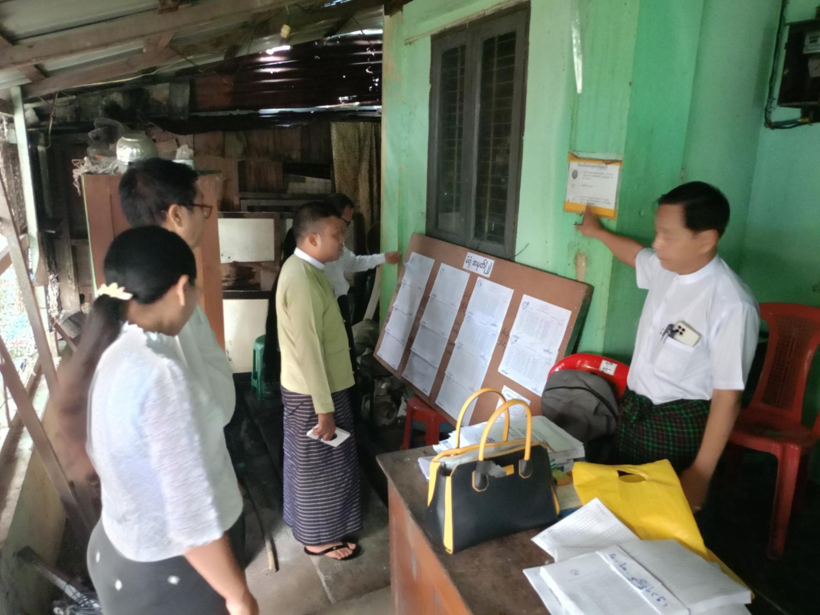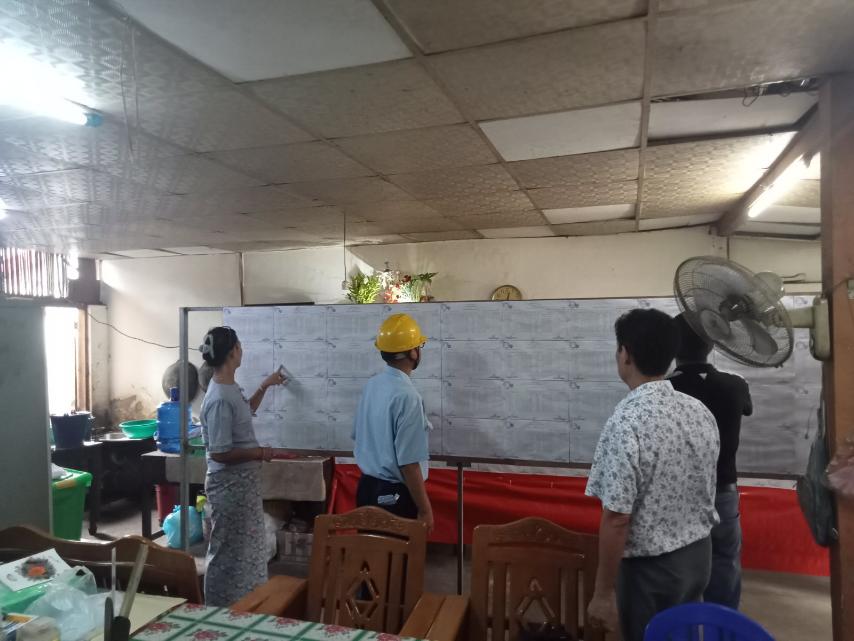 အဆိုပါမဲဆန္ဒရှင်ပြည်သူ အမည်စာရင်းများကြေညာခြင်းကို မဲဆန္ဒရှင်ပြည်သူများအနေဖြင့် မိမိတို့အမည်စာရင်းများကိုကြည့်ရှုနိုင်ပြီး မပါဝင်ပါက ပုံစံ(၃)ဖြင့်လည်းကောင်း၊ အချက်အလက်မပြည့်စုံပါက ကန့်ကွက်လိုလျှင် ပုံစံ(၄)ဖြင့်လည်းကောင်း တင်ပြဆောင်ရွက်နိုင်ကြောင်း မဲစာရင်းကြေညာထားခြင်းမဲစာရင်းများကို ပြည်သူများမသိသူမရှိ စေရန် ရပ်ကွက်အုပ်ချုပ်ရေး တာဝန်ရှိသူများက အသံချဲ့စက်များဖြင့် လှည့်လည်၍ နှိုးဆော်ပေးလျက်ရှိသည်။