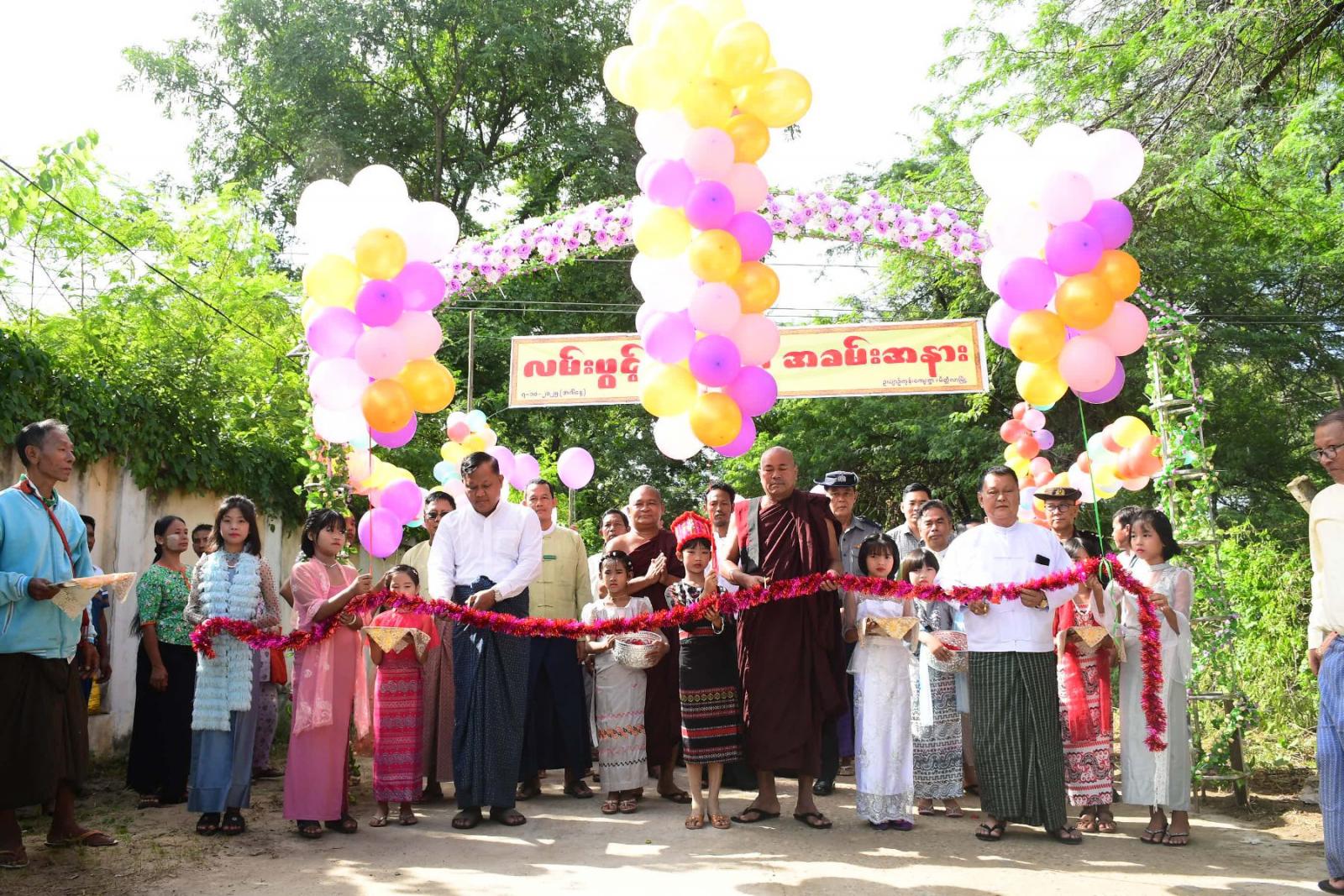 အခမ်းအနားသို့ ခရိုင်စီမံခန့်ခွဲရေးနှင့် အုပ်ချုပ်ရေးကော်မတီဝင် ဦးကျော်ဇေယျ နှင့် ကော်မတီဝင်များ၊ မြို့နယ်စီမံခန့်ခွဲရေးနှင့် အုပ်ချုပ်ရေးကော်မတီဥက္ကဋ္ဌ ဦးဇော်အောင်လေးနှင့် ကော်မတီဝင်များ တက်ရောက်အားပေးသည်။ ၎င်းကျေးရွာလမ်းသစ်အား ဟံလင်းမဟာစည် သာသနာ့ရိပ်သာ ဆရာတော် ဘဒ္ဒန္တအဂ္ဂသာရ ခရိုင်စီမံခန့်ခွဲရေးနှင့် အုပ်ချုပ်ရေးကော်မတီဝင်နှင့် တပ်မတော် ချည်မျှင်နှင့် အထည်စက်ရုံ(မိတ္ထီလာ) စက်ရုံမှူးဗိုလ်ကြီးနိုင်လင်းတို့က ဖဲကြိုးဖြတ်ဖွင့် လှစ်ပေးသည်။ အဆိုပါ ကျေးရွာကွန်ကရစ်လမ်းသည် အရှည် ပေ ၃၂ဝဝ ၊ အကျယ် ၁၄ ပေ ရှိပြီး စုစု ပေါင်းကုန်ကျငွေတန်ဖိုးကျပ် သိန်း ၆၂ဝ အကုန်အကျ၍ ကျေးရွာဒေသခံပြည်သူများ နှင့်အလှူရှင် စေတနာရှင်များ၏ စုပေါင်းလှူဒါန်းမှုဖြင့် ဆောင်ရွက်ခဲ့ခြင်းဖြစ်ကြောင်းသိရသည်။