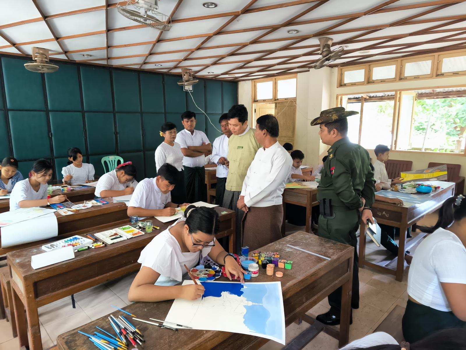 ဦးစွာမြို့နယ်ပညာရေးမှူး ဆရာမကြီး ဒေါ်ခင်သန်းဦးက ပန်းချီပြိုင်ပွဲနှင့်ပတ်သက်သည့် စည်းမျဥ်းစည်းကမ်းများ ရှင်းလင်းပြောကြားပြီး ကျောက်တန်းမြို့နယ်အတွင်းရှိ အထက်တန်းကျောင်းသား၊ ကျောင်းသူ (၁၅)ဦး၊ အလယ်တန်း (၂၁) ဦး၊ မူလတန်း(၁၂)ဦးတို့က နံနက် ၉ နာရီမှ ၁၁ နာရီအထိ ပန်းချီပြိုင်ပွဲကို ဝင်ရောက်ယှဥ်ပြိုင်ကြကြောင်း သိရသည်။