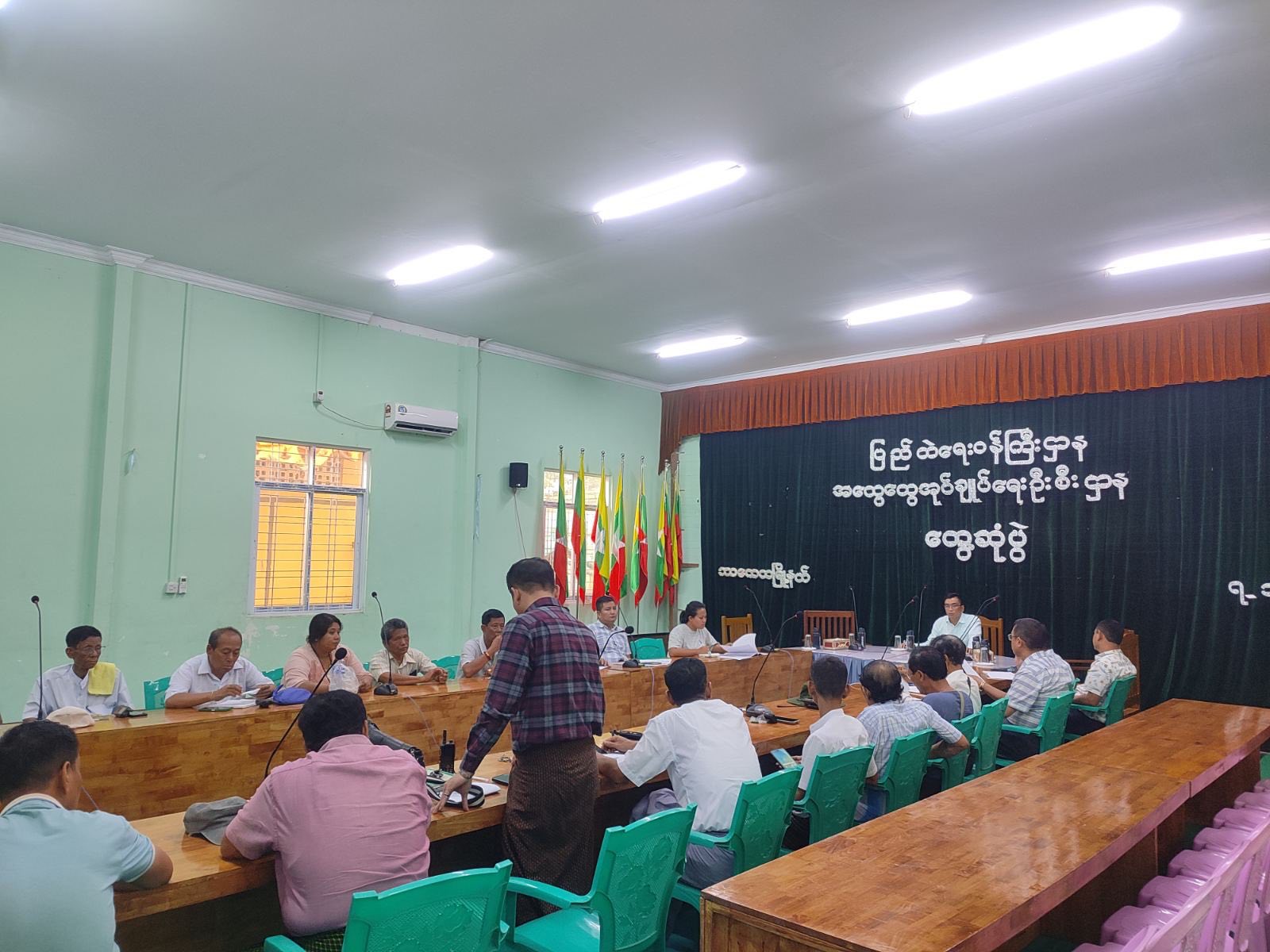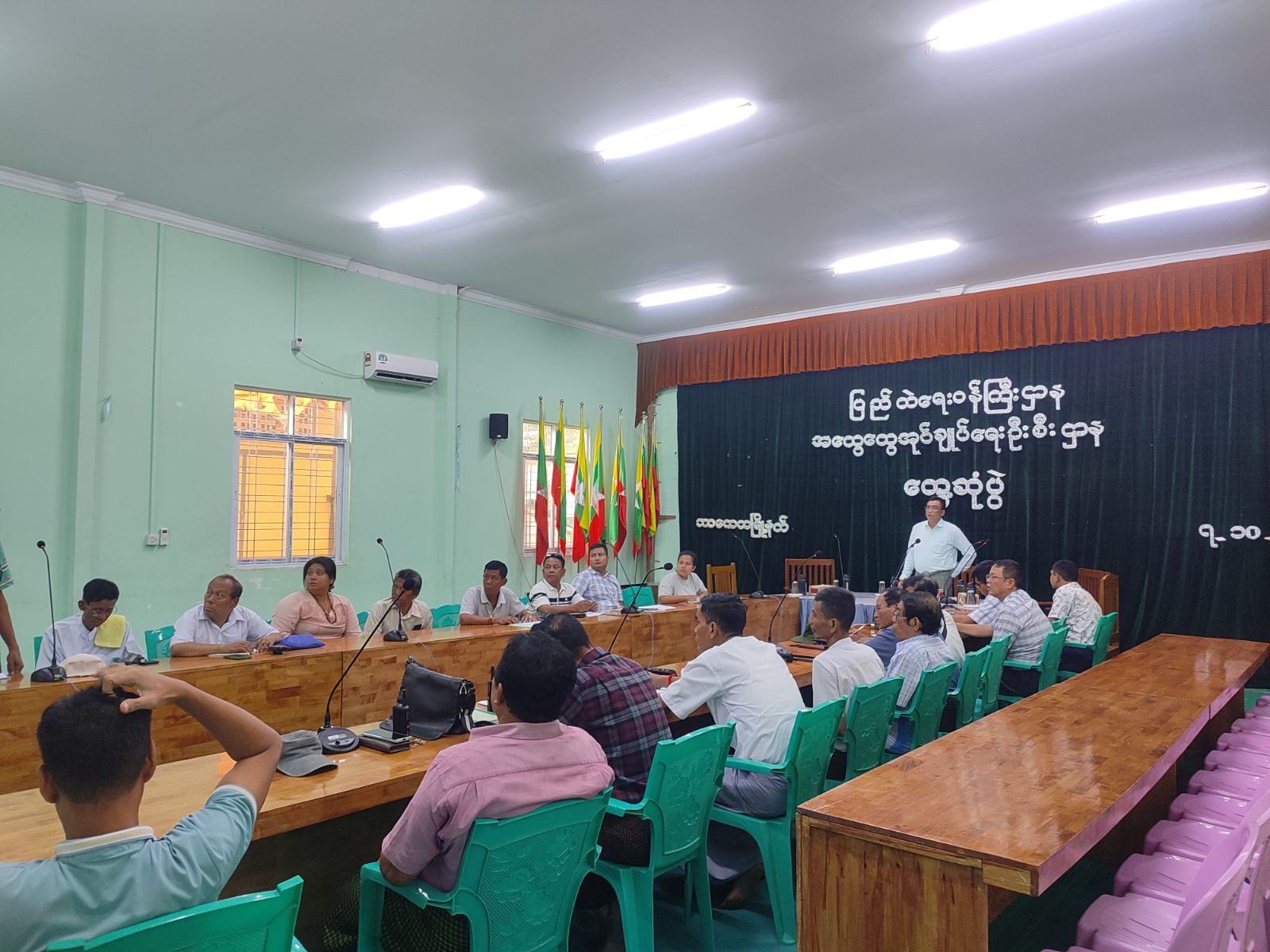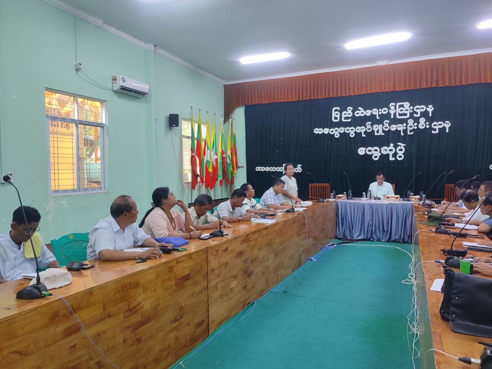 ရှေးဦးစွာ မြို့နယ်အုပ်ချုပ်ရေးမှူးမှ (၈-၁၀-၂၀၂၅) ရက်နေ့တွင် မြို့နယ်အားကစားကွင်း၌ ဖူဆယ်ဘောလုံးပြိုင်ပွဲကျင်းပပြုလုပ်ရန် စီစဥ်ထားရှိမှုကိစ္စရပ်များ၊ ပြည်သူ့စစ်မှုထမ်း ဆင့်ခေါ်ရာတွင် သက်မှတ်လျာထားဦးရေပြည့်မီရေး၊ ဥပဒေနှင့်အညီဖြစ်စေရေး ဆောင်ရွက်ကြ ရန်ကိစ္စ၊ မဲဆန္ဒရှင်စာရင်းများတွင် ရက်ပေါင်း(၁၈၀)နှင့်အထက် ရောက်ရှိနေထိုင်သူများအား မဲစာရင်းပါရှိစေရေးပုံစံ(၃က)ဖြင့် လျှောက်ထားနိုင်ရေးကျယ်ကျယ်ပြန့်ပြန့် အသိပေးဆောင်ရွက်ရန်၊ ရွေးကောက်ပွဲအသိပညာပေး ပိုစတာများအား မြကန်သာပန်းခြံရှေ့နေရာ၊ ဧရာ၀ဏ်လမ်းနှင့် အတွင်းရှုခင်းသာလမ်းထောင့်နေရာတို့တွင် စိုက်ထူနိုင်ရေးလိုအပ်သည်များ ပူးပေါင်းဆောင်ရွက်ကြရန်ကိစ္စရပ်များ ဆွေးနွေးမှာကြားခဲ့ပြီး မြို့နယ်အား/ကာမှူးဒေါ်ခင်ကောင်းစံမှ ဖူဆယ်ဘောလုံးပြိုင်ပွဲဖွင့်ပွဲနှင့် ပြိုင်ပွဲစည်းမျဥ်းစည်းကမ်းများကို အသေးစိတ် ဆွေးနွေးတင်ပြခဲ့ပါကြောင်း သိရသည်၊၊