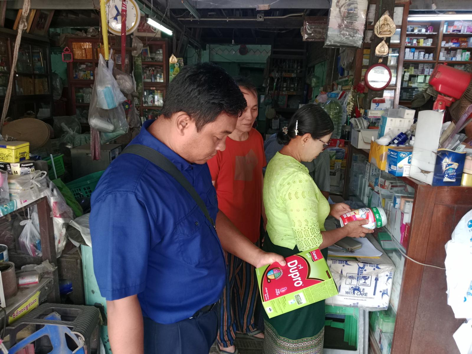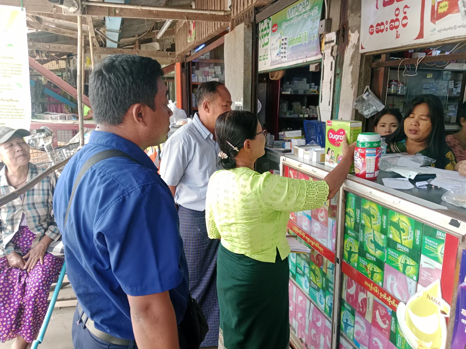 ရန်ကုန်တိုင်းဒေသကြီး၊ သန်လျင်ခရိုင်၊ သုံးခွမြို့နယ် စားသုံးသူရေးရာဦးစီးဌာနမှ ကလေးအာဟာရဖြည့်စွက်စာအမျိုးမျိုးတွင် ကုန်အညွှန်းအမှတ်အသားဖော်ပြထားရှိမှု ရှိ/မရှိ ဈေးကွက်စောင့်ကြည့်စစ်ဆေးခြင်းကို အောက်တိုဘာ ၉ ရက် နံနက် ၁၀ နာရီက သုံးခွမြို့နယ် အတွင်းရှိ ဆေးဆိုင်များတွင် စစ်ဆေးဆောင်ရွက်ခဲ့ကြောင်း သိရသည်။