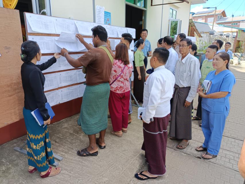 ဆက်လက်ပြီး ပထမအကြိမ် ရပ်ကွက်ရွေးကောက်ပွဲကော်မရှင်ရုံးများတွင်ကပ်ထားသော မဲစာရင်းကြေညာခြင်းကို မြို့နယ်ရွေးကောက်ပွဲကော်မရှင်အဖွဲ့ခွဲ့ဥက္ကဋ္ဌနှင့်အဖွဲ့ဝင်များက လှည့်လည်ကြည့်ရှု၍ မဲဆန္ဒရှင်ပြည်သူများအနေဖြင့် မိမိအမည်မပါဝင်ပါက ပုံစံ(၃)ဖြင့် လည်းကောင်း၊ ကန့်ကွက်လိုလျှင်ပုံစံ (၄)ဖြင့်လည်းကောင်း၊ အချက်အလက်များ မှားယွင်းနေလျှင် ပုံစံ(၄-ဂ)ဖြင့်လည်းကောင်း၊ လျှောက် ထားနိုင်ကြောင်းနှင့်လိုအပ်သည်များကိုလည်း တာဝန်ရှိအကြီးကဲများမှ ပေါင်းစပ်ညှိနှိုင်းဆောင်ရွက်ပေးခဲ့ကြောင်း သိရသည်။