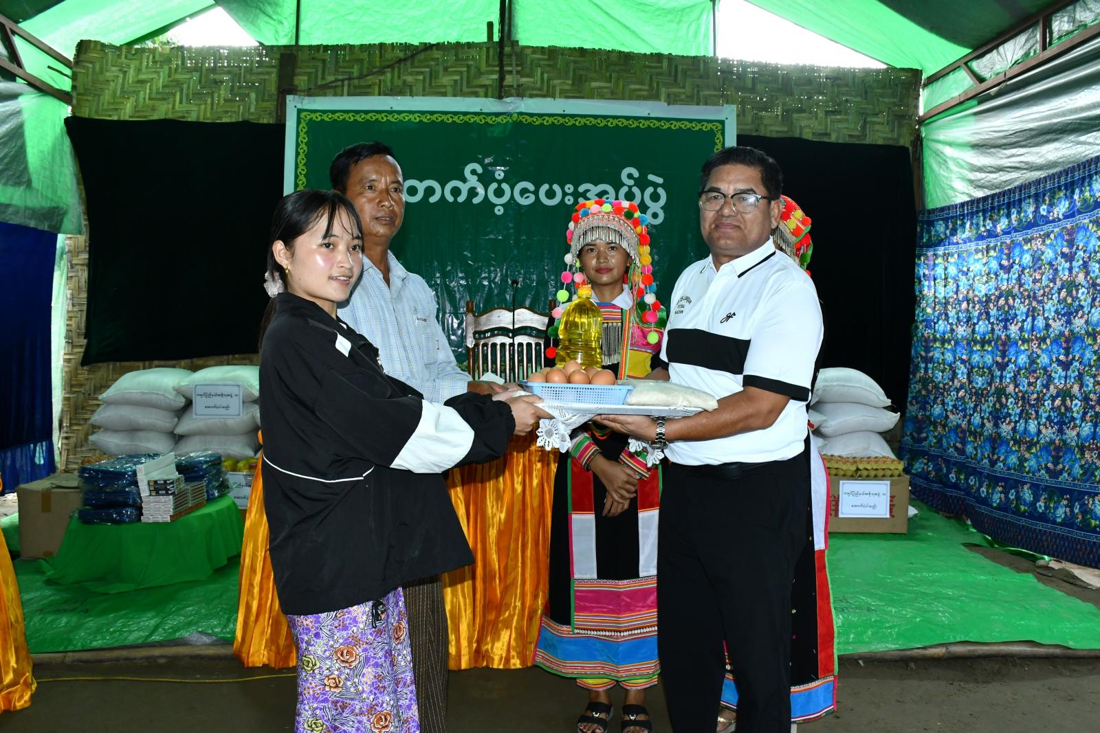 ထိုမှတစ်ဆင့် ပြည်နယ်ဝန်ကြီးချုပ်နှင့်အဖွဲ့ဝင်များသည် လယ်ကုန်း(ဇီးအွန်)ရပ်ကွက်အတွင်းရှိ OMF လီဆူယာယီတိမ်းရှောင်စခန်းသို့ သွားရောက်ခဲ့ကြပြီး စခန်းနေမိသားစုများအား ရင်းရင်းနှီးနှီး လိုက်လံနှုတ်ဆက်အားပေးခဲ့ကြကာ ပြည်နယ်ဝန်ကြီးချုပ်နှင့် ပြည်နယ်အစိုးရအဖွဲ့ဝင် ဝန်ကြီးများက စခန်းနေအိမ်ထောင်စု (၅၅)စုတို့အတွက် ဆန် (၂၄)ပြည်ပါအိတ် (၅၅)အိတ်၊ ဆီ (၅၅)ပိဿာ၊ ကြက်ဥ ၁၁၀၀ လုံးတို့အား အသီးသီးထောက်ပံ့ပေးအပ်ကြရာ စခန်းတာဝန်ခံတစ်ဦးက ကျေးဇူးတင်စကားနှင့် စခန်းနေမိသားစုများအတွက် လုံခြုံစွာနေထိုင်နိုင်ရေး မိုးကာလိုအပ်ချက်များနှင့် ကလေးများစာကျက်ချိန်တွင် လျှပ်စစ်မီးရရှိရေး၊ သောက်သုံံးရေချိုးရေ စသည့် လိုအပ်ချက်များကို တင်ပြသည်။