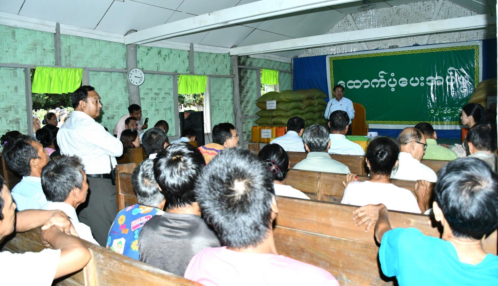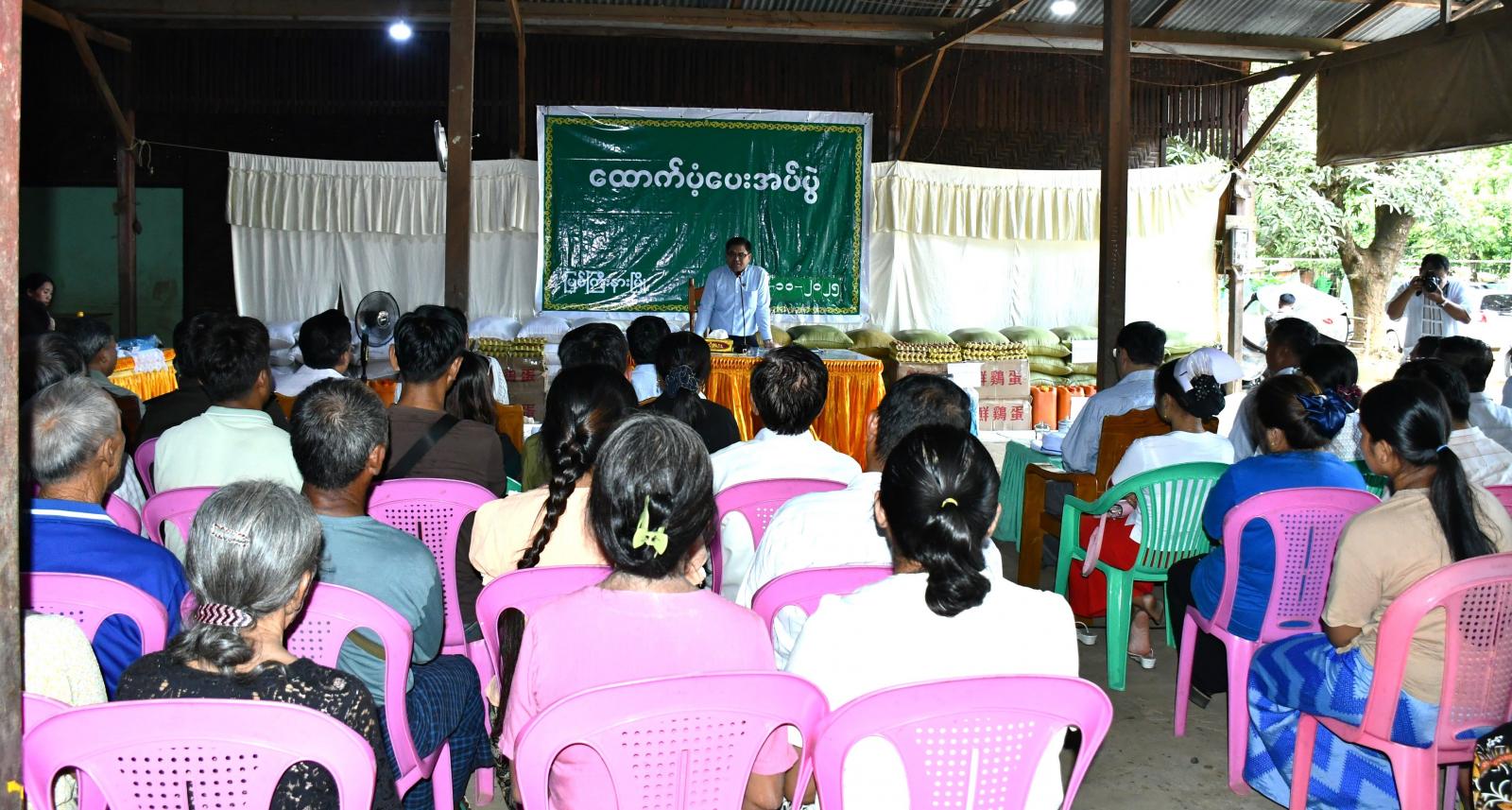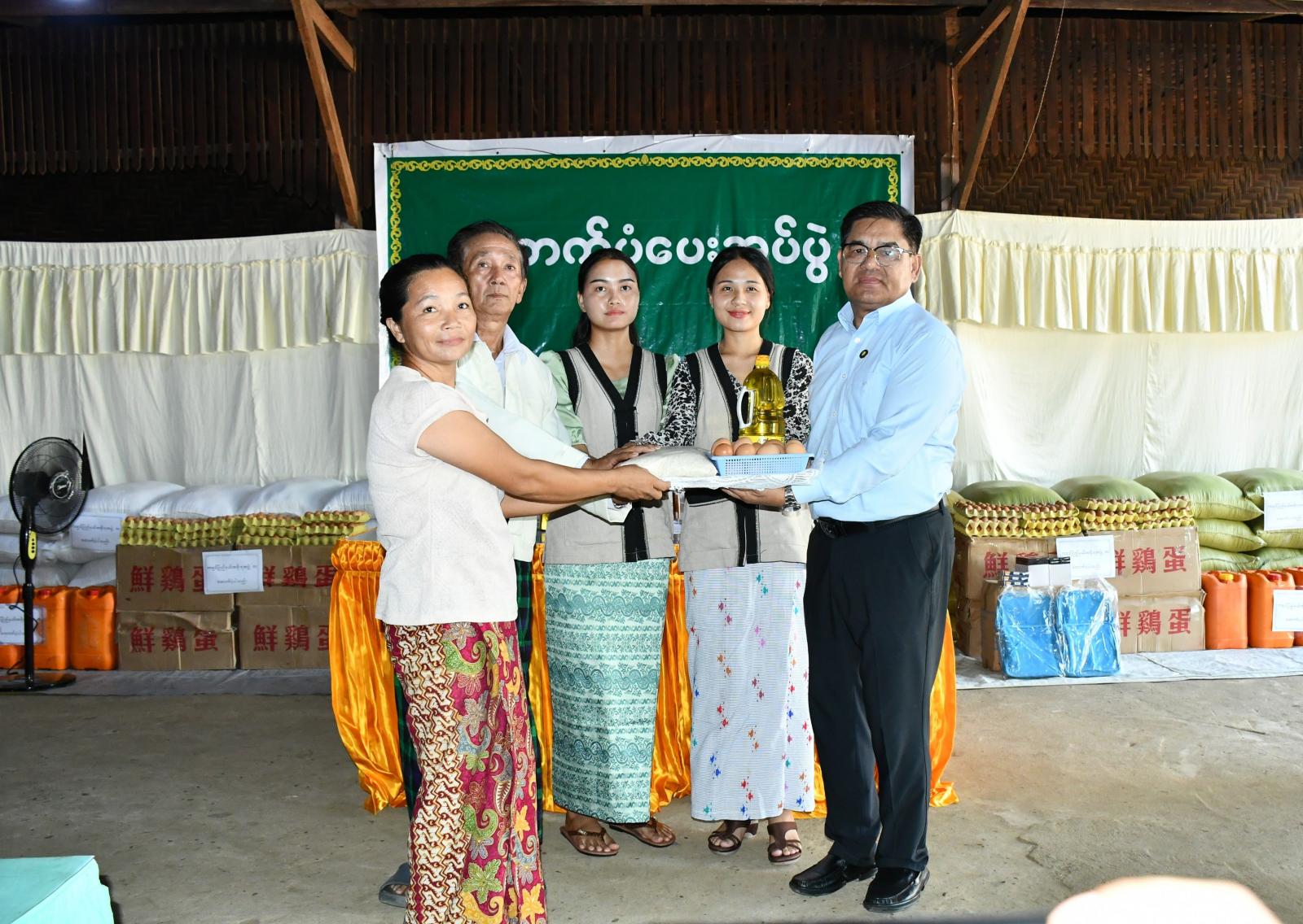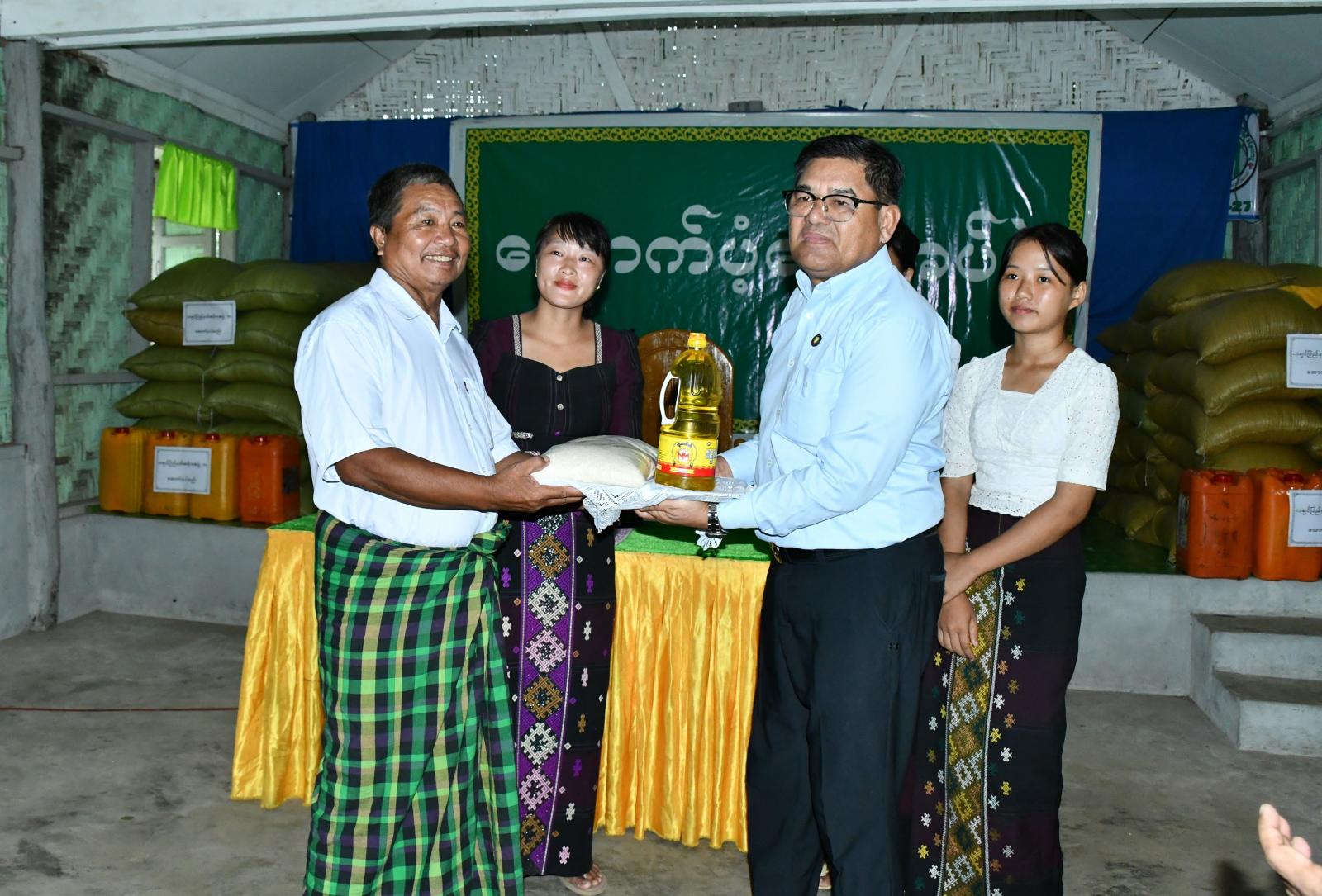 ဦးစွာ ပြည်နယ်ဝန်ကြီးချုပ်နှင့် အဖွဲ့ဝင်များသည် ရွှေစက်ရပ်ကွက်အတွင်းရှိ မြစ်ကြီးနား ဇုံနယ် လီဆူနှစ်ခြင်းအသင်းတော်များအဖွဲ့ ယာယီနေရပ်စွန့်ခွာစခန်းသို့ သွားရောက်ပြီး ပြည်နယ် ဝန်ကြီးချုပ်နှင့် ပြည်နယ်ဝန်ကြီးများက အဆိုပါ စခန်း၌ COC ဘုရားကျောင်း၊ နာဇရပ်အသင်းတော် ကျမ်းစာကျောင်း၊ ခိုလှုံရာလူငယ်ပြုစုရေးသင်တန်းကျောင်း၊ ဦးမိုတီရမ်းခြံဝင်းနှင့် ခရစ်တော်၏ အသင်းတော်စခန်းတို့တွင် ဝိုင်းမော်မြို့နယ်အတွင်းမှ ယာယီခိုလှုံနေထိုင်လျက်ရှိသော အိမ်ထောင်စု ၁၉၉စုတို့အတွက် ဆန် (၂၄)ပြည်ပါအိတ် ၁၉၉ အိတ်၊ ဆီ ၁၉၉ ပိဿာ၊ ကြက်ဥအလုံး ၃၉၈၀ တို့နှင့် ကျောင်းသုံးကိရိယာပစ္စည်းများကို ထောက်ပံ့ပေးအပ်ရာ စခန်းတာဝန်ခံတစ်ဦးက ကျေးဇူး တင်စကားနှင့် စခန်းများအလိုက် နေအိမ်တန်းလျားများ ဆောက်လုပ်ပြုပြင်နိုင်ရေးအတွက် ဝါး၊ မိုးကာ၊ သွပ်ကြိုးလိုအပ်ချက်များ၊ သဲကျောက်ခင်းပေးနိုင်ရေး၊ သောက်သုံးရေလိုအပ်ချက်များ စသည်တို့ကို တင်ပြသည်။
