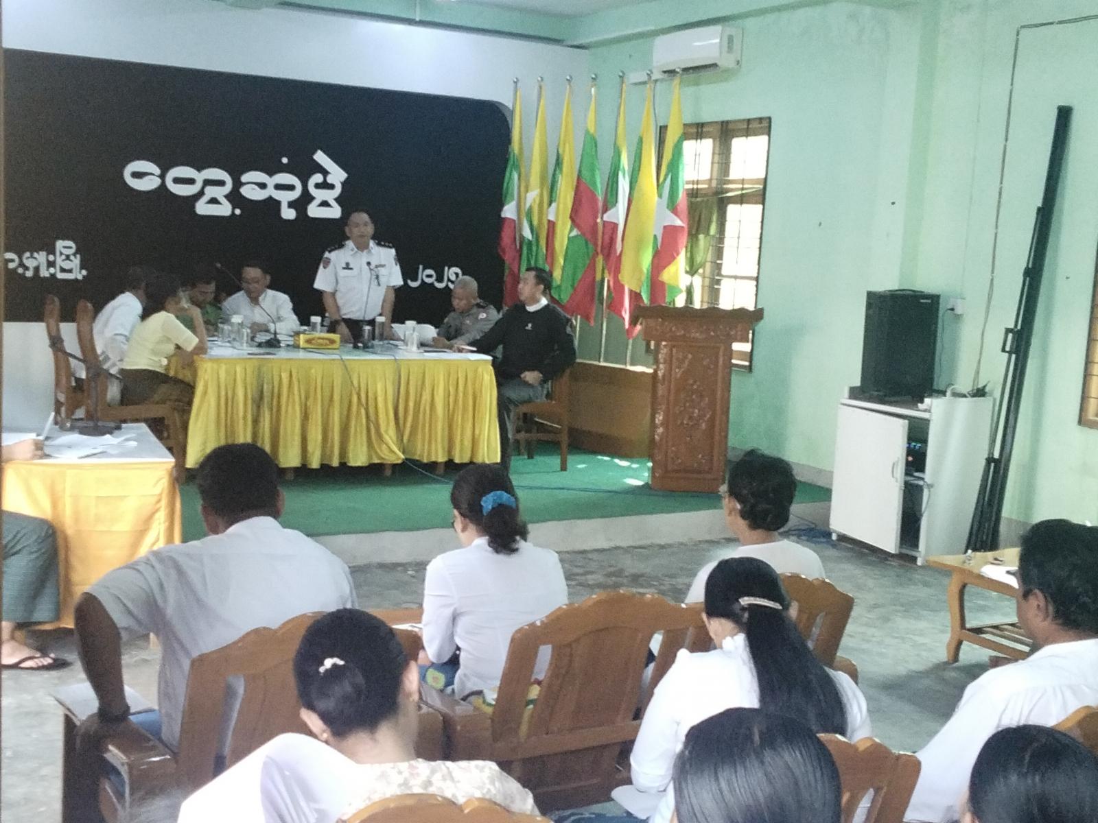 အစည်းအဝေးတွင် မြို့နယ်စီမံခန့်ခွဲရေးနှင့် အုပ်ချုပ်ရေးကော်မတီဥက္ကဋ္ဌ ဦးမျိုးမင်းနှင့် အဖွဲ့ဝင်များက ပါတီစုံဒီမိုကရေစီအထွေထွေရွေးကောက်ပွဲ အောင်မြင်စွာကျင်းပနိုင်ရေးအတွက် မြို့နယ်အတွင်း မဲစာရင်းများ မှန်ကန်မှုရှိစေရေးနှင့် ကွဲလွဲမှုမရှိစေရေးအတွက် မြေပြင်ကွင်းဆင်း တိုက်ဆိုင်စစ်ဆေး ဆောင်ရွက်သွားရန်၊ မြို့နယ်(Working Group)မြေပြင်ကွင်းဆင်း စာရင်းကောက်ယူရေးကြီးကြပ်မှု ကော်မတီနှင့် ပူးပေါင်း၍ကွင်းဆင်းဆောင်ရွက်ရာတွင် ရွေးကောက်ပွဲ အောင်မြင်စွာကျင်းပနိုင်ရေး ဌာနဆိုင်ရာအားလုံး ပူးပေါင်းဆောင်ရွက်ကြရန်၊ ရပ်ကွက်ကျေးရွာများတွင် ကြေညာထားသည့် မဲစာရင်းများကိုလည်း ပြည်သူများ ကျယ်ကျယ်ပြန့်ပြန့်သိရှိစေရေး စဉ်ဆက်မပျက် လှည့်လည်ဆော်ဩသွား ကြရန်နှင့် မသမာသူများဖျက်စီးမှုမရှိစေရေး စနစ်တကျ ထိန်းသိမ်းစောင့်ရှောက်သွားရန်၊ မဲစာရင်းလာရောက် ကြည့်ရှုသည့် ပြည်သူများက မဲစာရင်းတွင် အမည်ထည့်သွင်းခြင်း၊ မပါဝင်သင့်သူများ ပါဝင်ပါက ကန့်ကွက်ခြင်း၊ အချက်အလက်များမှားယွင်းပါက ပြင်ဆင်ခြင်းများ လျှောက်ထားရာတွင် ရွေးကောက်ပွဲ ဥပဒေနှင့်အညီ စနစ်တကျသတ်မှတ်ပုံစံများဖြင့် ပြုစုတင်ပြဆောင်ရွက်သွားကြရန် ဆွေးနွေး ပြောကြားခဲ့ပြီး တက်ရောက်လာသူများက သိရှိလိုသည်များကို မေးမြန်းခဲ့ရာ တာဝန်ရှိသူများက ပြန်လည်ရှင်းလင်း ဖြေကြားခဲ့ကြောင်း သိရသည်။