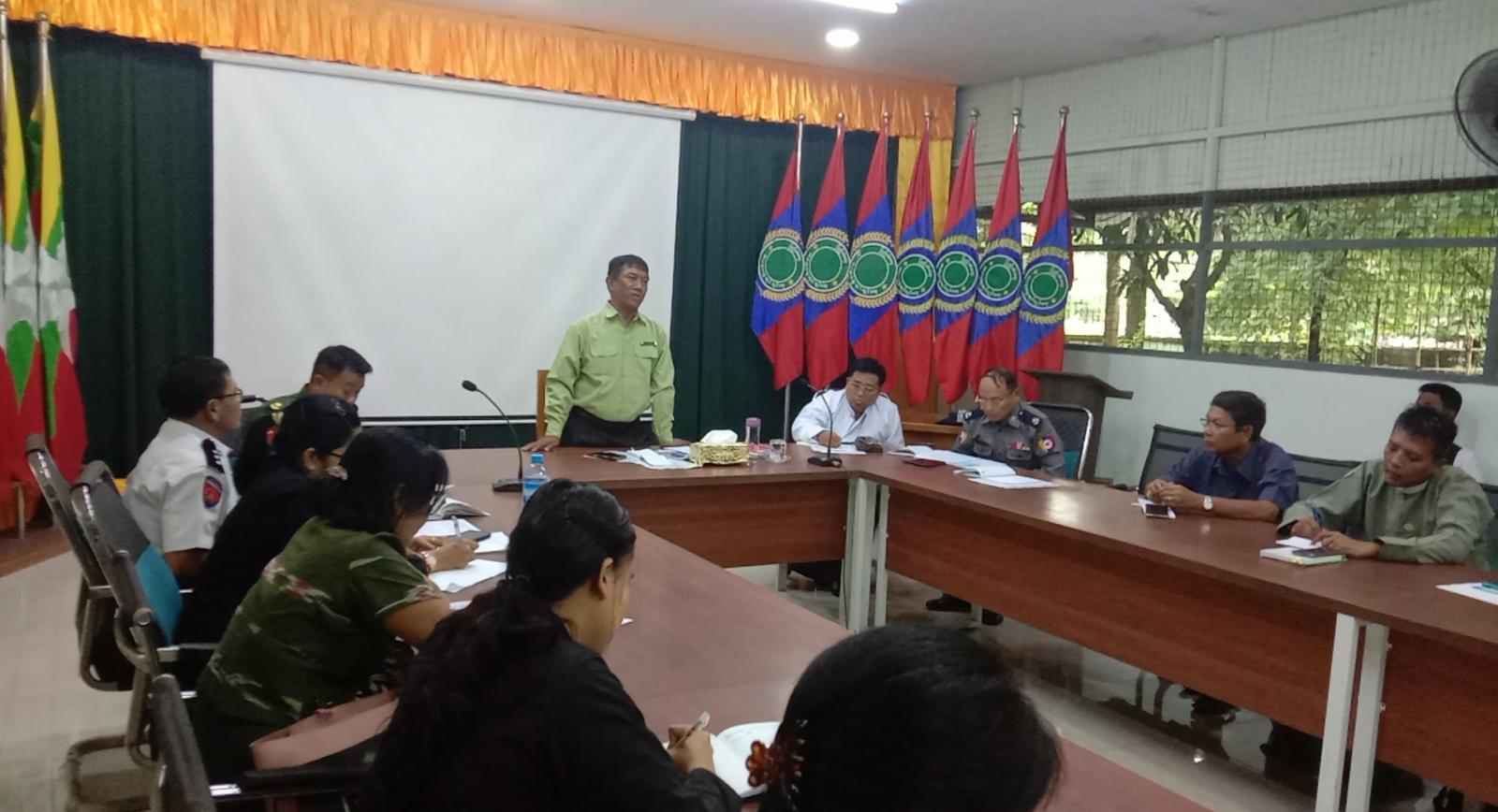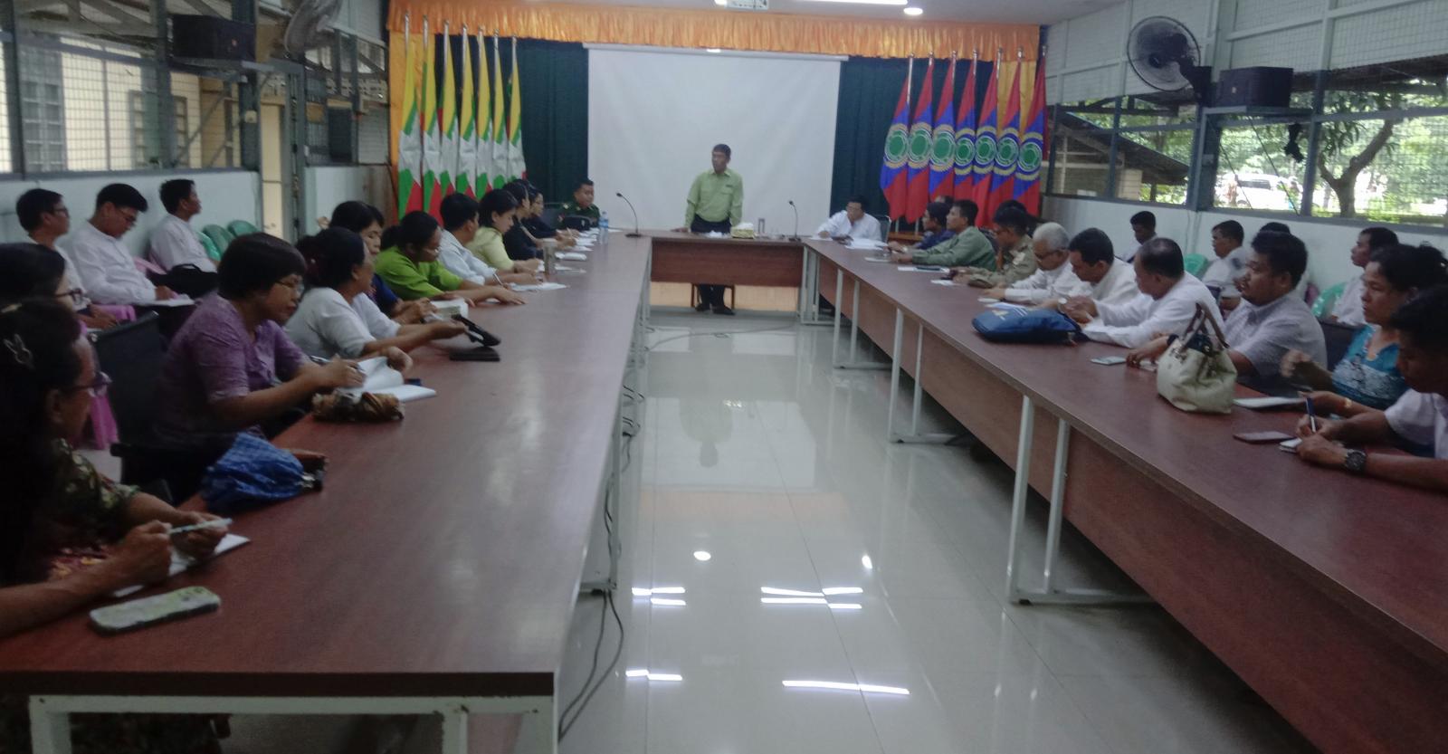 လုပ်ငန်းညှိနှိုင်းအစည်းအဝေးတွင် မြို့နယ်စီမံခန့်ခွဲရေးနှင့်အုပ်ချုပ်ရေးကော်မတီဥက္ကဋ္ဌ ဦးအောင်ဘော်က အဖွင့်အမှာစကားပြောကြားပြီး မြို့နယ်ရွေးကောက်ပွဲကော်မရှင်အဖွဲ့ခွဲ အတွင်းရေးမှူးက အသက်(၁၈)နှစ်ပြည့်ပြီးသူတိုင်း ဆန္ဒမဲပေးပိုင်ခွင့်ရှိစေရေး၊ မဲပေးခွင့်ဆုံးရှုံးမှုမရှိစေရေး၊ ကြိုတင်ပြင်ဆင်ဆောင်ရွက်ထားရှိမှုများ၊ ရွေးကောက်ပွဲလုပ်ငန်းဆိုင်ရာကိစ္စရပ်များ၊ မဲဆန္ဒရှင်စာရင်းကို ပထမအကြိမ်ကြေညာထားသည့် အခြေအနေများ၊ မဲဆန္ဒနယ်မြေသတ်မှတ်ချက်များအကြောင်းတို့ကို ရှင်းလင်းပြောကြားသည်။