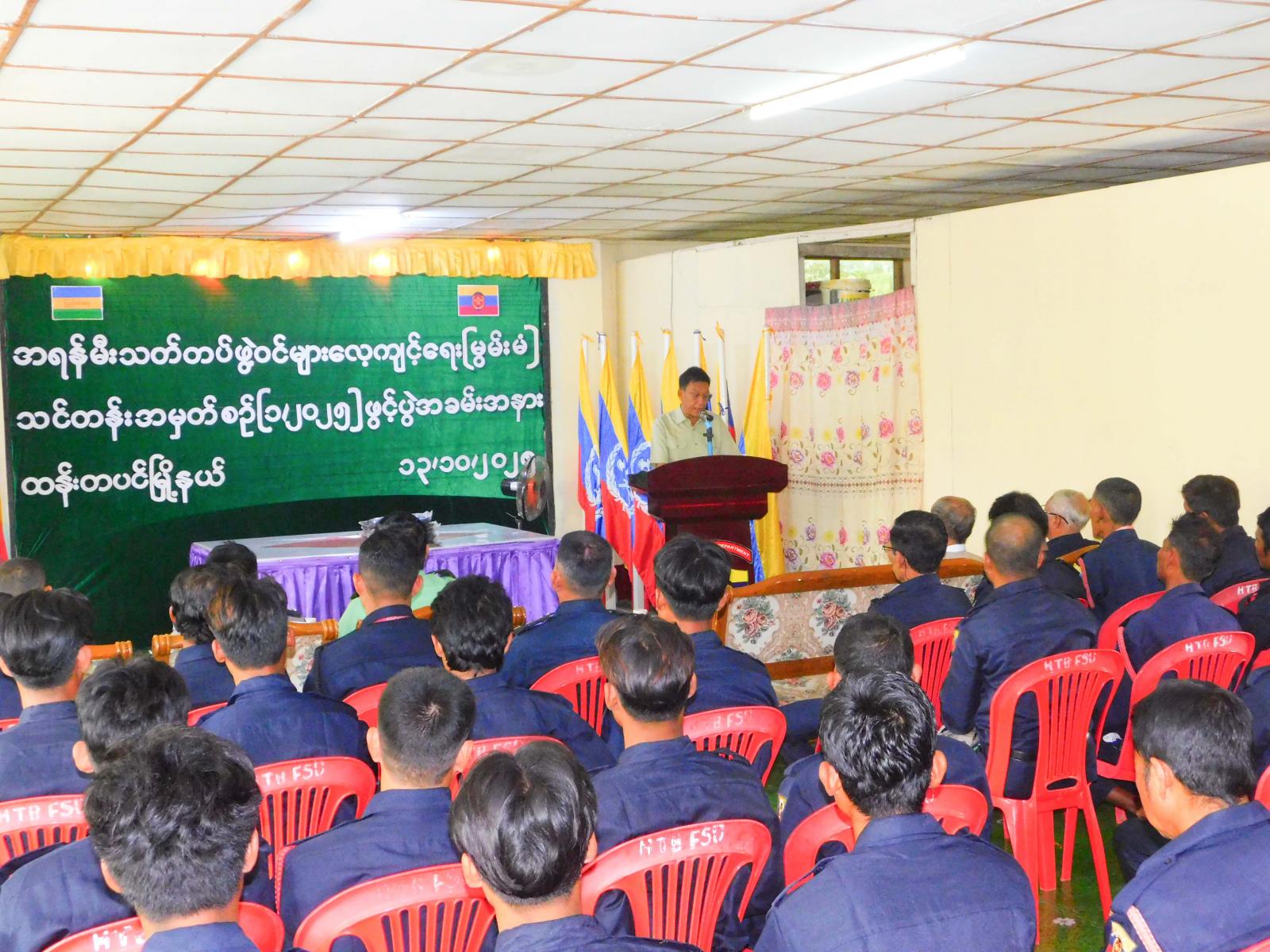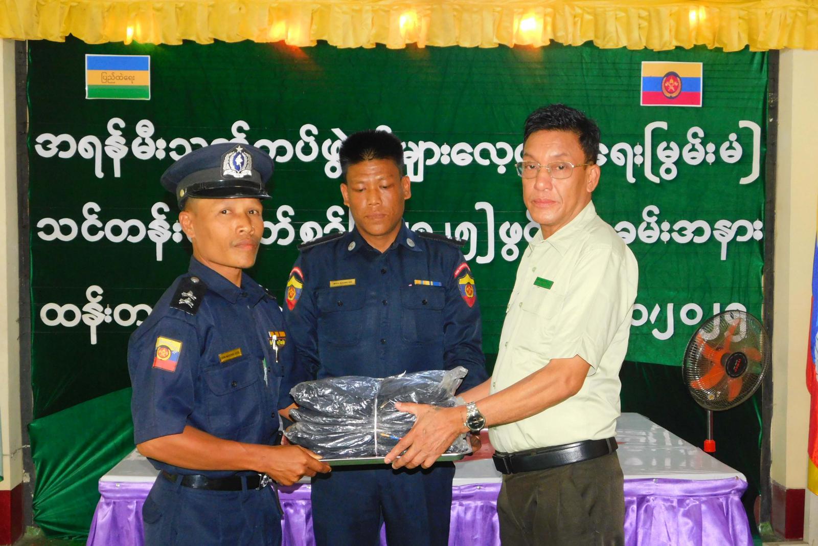 သင်တန်းဖွင့်ပွဲအခမ်းအနားတွင် မြို့နယ်စီမံခန့်ခွဲရေးနှင့်အုပ်ချုပ်ရေးကော်မတီဥက္ကဋ္ဌ ဦးနိုင်နိုင်ဦးက အဖွင့်အမှာစကားပြောကြားခဲ့ပြီး မြို့နယ်စီမံခန့်ခွဲရေးနှင့်အုပ်ချုပ်ရေးကော်မတီဥက္ကဋ္ဌ ဦးနိုင်နိုင်ဦးနှင့် မြို့နယ်စီမံခန့်ခွဲရေးနှင့်အုပ်ချုပ်ရေးကော်မတီအဖွဲ့ဝင် ဗိုလ်မှူးဖြိုးဝေစိုးတို့က တူညီဝတ်စုံများကို အရန်တပ်ဖွဲ့ဝင်များထံသို့ ပေးအပ်ခဲ့ကြောင်းလည်း သိရသည်။