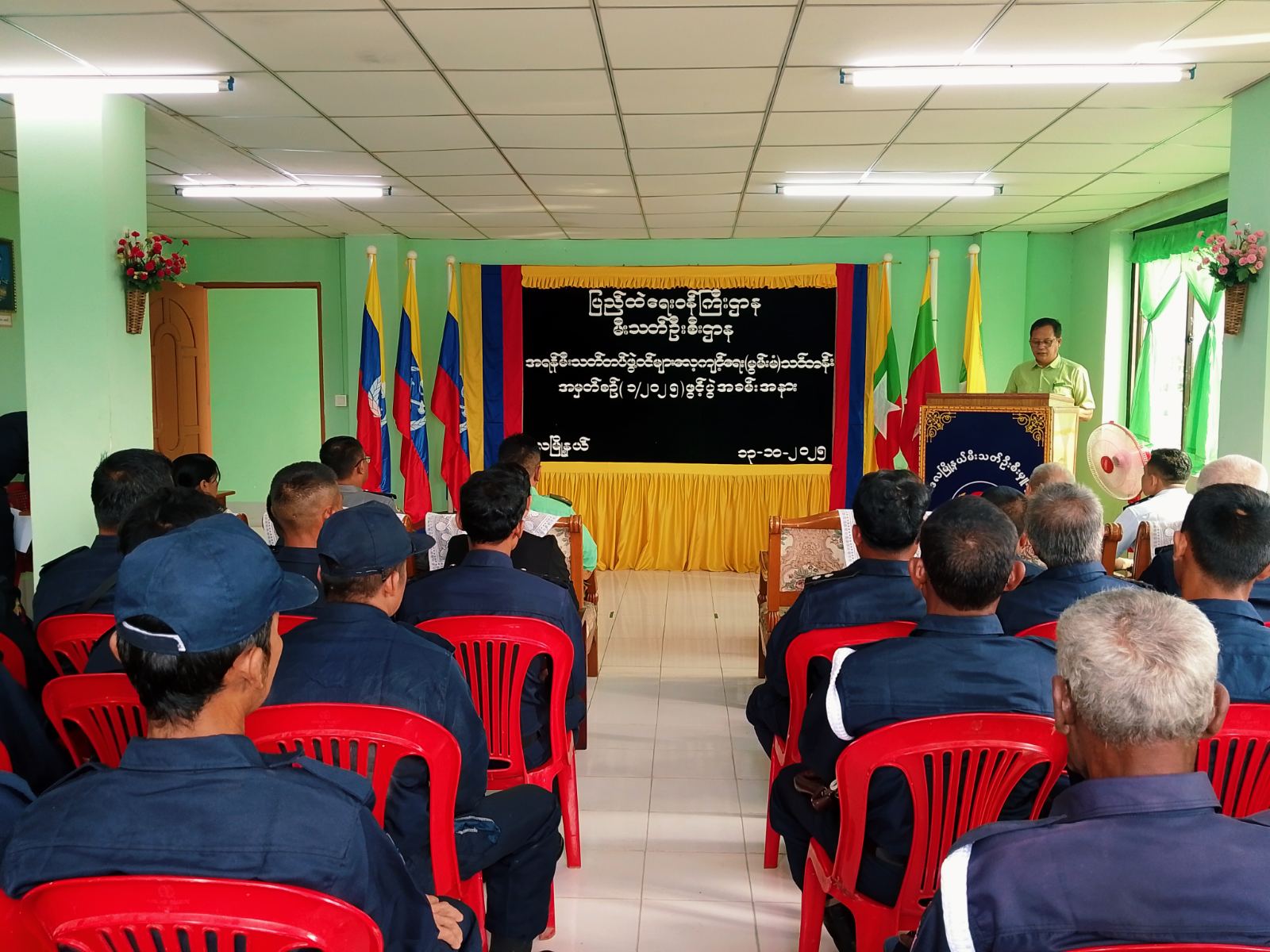 ဦးစွာ အခမ်းအနားတွင် မြို့နယ်စီမံခန့်ခွဲရေးနှင့်အုပ်ချုပ်ရေးကော်မတီဥက္ကဋ္ဌ ဦးစိုင်းအောင်မြတ်က သင်တန်းဖွင့်အမှာစကားပြောကြားရာတွင် သဘာဝဘေးအန္တရာယ်များနှင့် မီးလောင်မှုဖြစ်ပွားလာပါက မီးသတ်တပ်ဖွဲ့ဝင်များနှင့်အတူ မီးသတ်ပစ္စည်းကိရိယာများဖြင့် ကျွမ်းကျင်ပိုင်နိုင်စွာ စနစ်တကျ မီးငြိမ်းသတ်ရေးနှင့်ရှာဖွေကယ်ဆယ်ရေးလုပ်ငန်းများကို ပြုလုပ်နိုင်ရန်ရည်ရွယ်၍သင်တန်းအား ဖွင့်လှစ်ခြင်းဖြစ်ကြောင်း ပြောကြားခဲ့သည်။