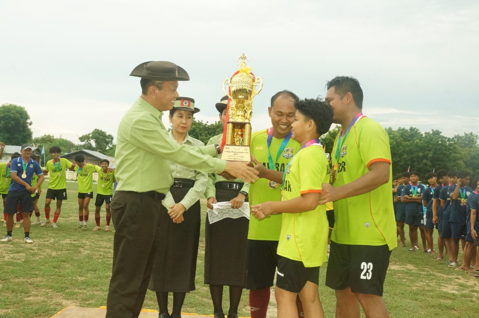 မြို့နယ်စီမံခန့်ခွဲရေးနှင့်အုပ်ချုပ်ရေးကော်မတီဥက္ကဋ္ဌဖလား အလွတ်တန်းဘောလုံးပြိုင်ပွဲကို စက်တင်ဘာ ၉ ရက်နေ့မှ စတင်ကျင်းပခဲ့ရာ ယမန်နေ့ ညနေ ၄ နာရီခွဲအချိန်တွင် ဗိုလ်လုပွဲ၊ ပိတ်ပွဲအခမ်းအနားနှင့် ဆုချီးမြှင့်ခြင်းအခမ်းအနား ကျင်းပခဲ့ခြင်းဖြစ်ကြောင်း၊ အခမ်းအနားသို့ ညောင်ဦးခရိုင် စီမံခန့်ခွဲရေးနှင့်အုပ်ချုပ်ရေးကော်မတီဥက္ကဋ္ဌ ဦးကျော်မင်းညိုနှင့် အဖွဲ့ဝင်များ၊ မြို့နယ်စီမံခန့်ခွဲရေးနှင့်အုပ်ချုပ်ရေးကော်မတီဥက္ကဋ္ဌ ဦးဝင်းလှိုင်တင့်နှင့် အဖွဲ့ဝင်များ၊ ခရိုင်/မြို့နယ်အဆင့်ဌာနဆိုင်ရာများ၊ ပြိုင်ပွဲဝင်အသင်းများ၊ ကြည့်ရှုအားပေးသည့် ပြည်သူများ စုစုပေါင်းအင်အား (၄၀၀)ဦးခန့် တက်ရောက်ခဲ့ပြီး ခရိုင်စီမံခန့်ခွဲရေးနှင့် အုပ်ချုပ်ရေးကော်မတီဥက္ကဋ္ဌ ဦးကျော်မင်းညိုနှင့် အဖွဲ့ဝင်များ၊ မြို့နယ်စီမံခန့်ခွဲရေးနှင့် အုပ်ချုပ်ရေးကော်မတီဥက္ကဋ္ဌ ဦးဝင်းလှိုင်တင့်နှင့် အဖွဲ့ဝင်များမှ ပြိုင်ပွဲတွင် ရှေ့တန်းအကောင်းဆုံးဆု၊ အလယ်တန်းအကောင်းဆုံးဆု၊ နောက်တန်းအကောင်းဆုံးဆု၊ ဂိုးသမားအကောင်းဆုံးဆု၊ ပွဲစဉ်တစ်လျှောက် အကောင်းဆုံး ဘောလုံးအားကစားသမားများအား ဆုများချီးမြှင့်ပြီး တတိယ၊ ဒုတိယ၊ ပထမဆုရရှိသည့် ဆုရရှိသည့် ဘောလုံးအသင်းများနှင့် ကစားသမားများအား ဆုဖလား၊ ဆုတံဆိပ်နှင့် ဂုဏ်ပြုဆုငွေများ အသီးသီး ပေးအပ်ချီးမြှင့်ခဲ့ကြောင်း သိရသည်။