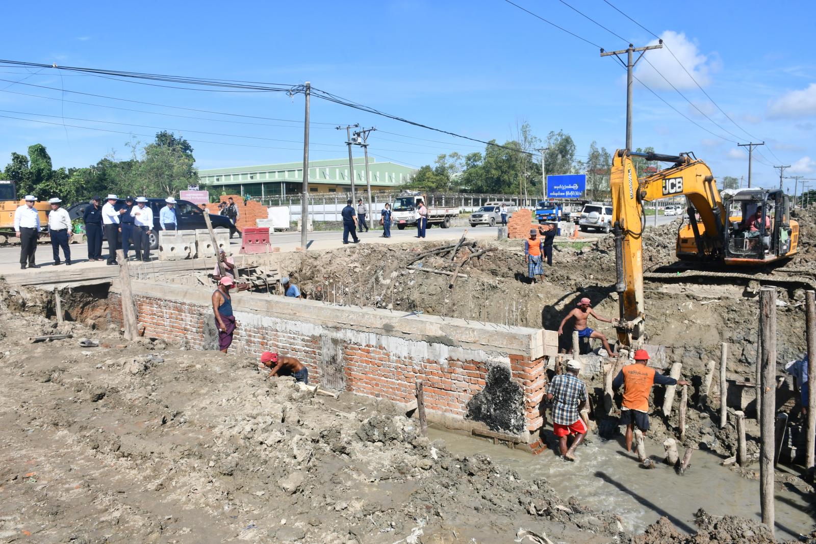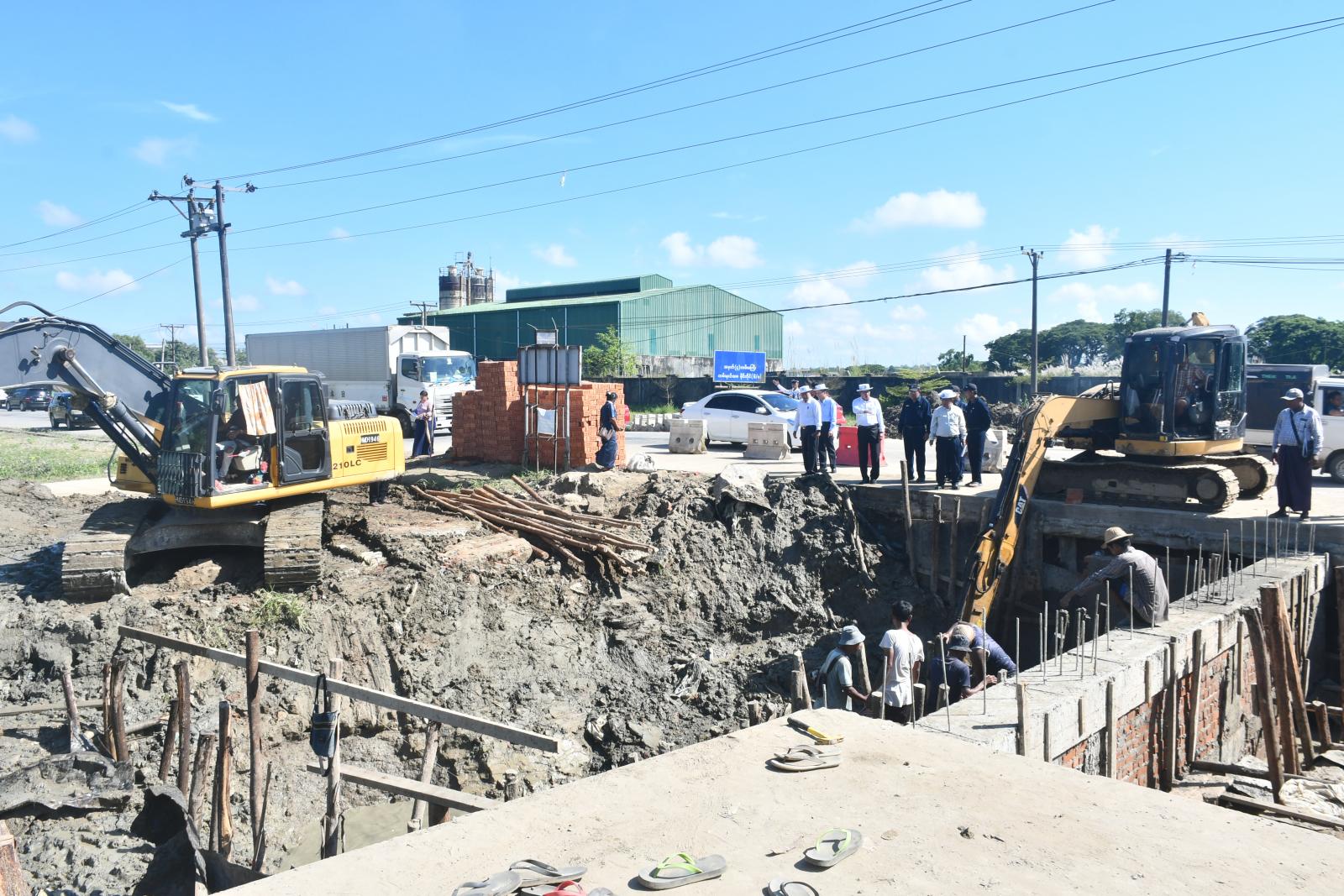 ဦးစွာ ရန်ကုန်တိုင်းဒေသကြီးဝန်ကြီးချုပ် ဦးစိုးသိန်းနှင့်အဖွဲ့သည် ရွှေပြည်သာမြို့နယ်၊ အမှတ်(၄) လမ်းမကြီးတစ်လျှောက် ရေးစီးရေလာကောင်းမွန်ရေးအတွက် ဆောက်လုပ်ရေးမှတ်တိုင်အနီးတွင် လမ်းဘေးဝဲ/ယာနှင့် အမှတ်(၄) လမ်းမကြီးနှင့် မင်းလမ်းထောင့်တွင် လမ်းဘေးဝဲ/ယာ မြေသားမြောင်းတူးဖော်ဆောင်ရွက်ခြင်းနှင့် အုတ်ရေမြောင်းပြုလုပ်နေသည့်အခြေအနေများအား ကြည့်ရှုစစ်ဆေးသည်။
