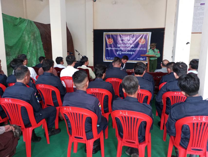 အခမ်းအနားတွင် မြို့နယ်စီမံခန့်ခွဲရေးနှင့်အုပ်ချုပ်ရေးကော်မတီအဖွဲ့ဝင် ဗိုလ်မှူးဌေးကြွယ်က အဖွင့်အမှာစကားနှင့် လုံခြုံရေးဆိုင်ရာကိစ္စရပ်များ၊ သင်တန်းနှင့်ပတ်သက်သော လိုအပ်သည်များကို ရှင်းလင်းပြောကြားခဲ့သည်။