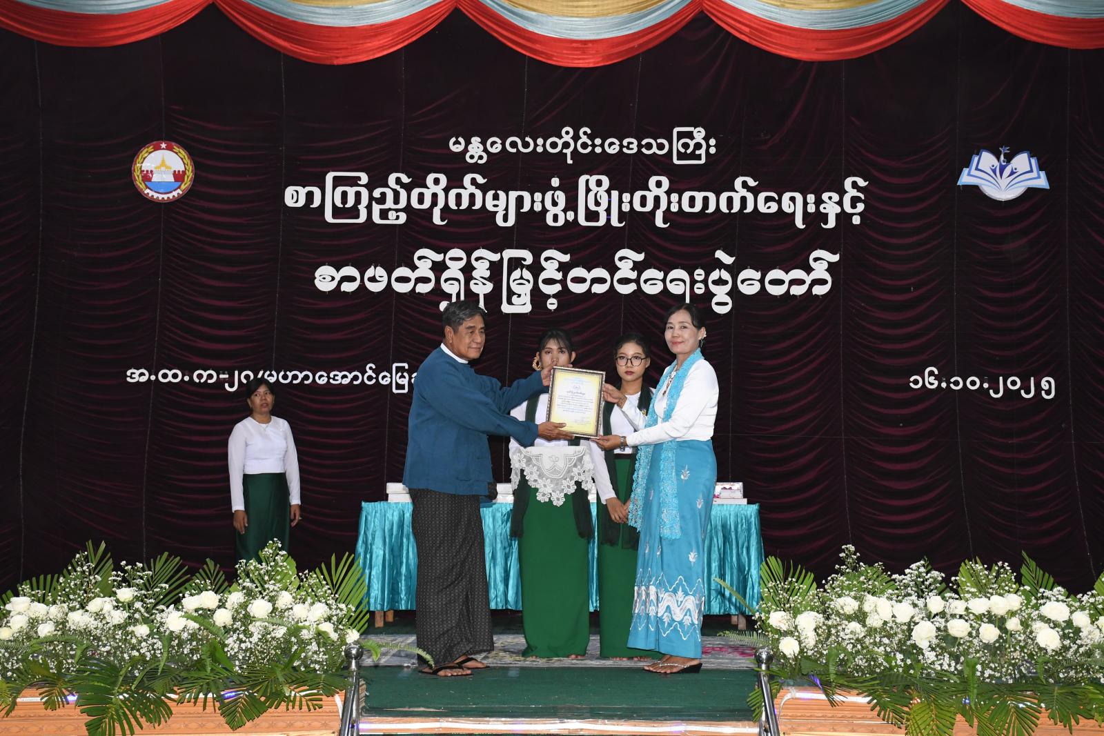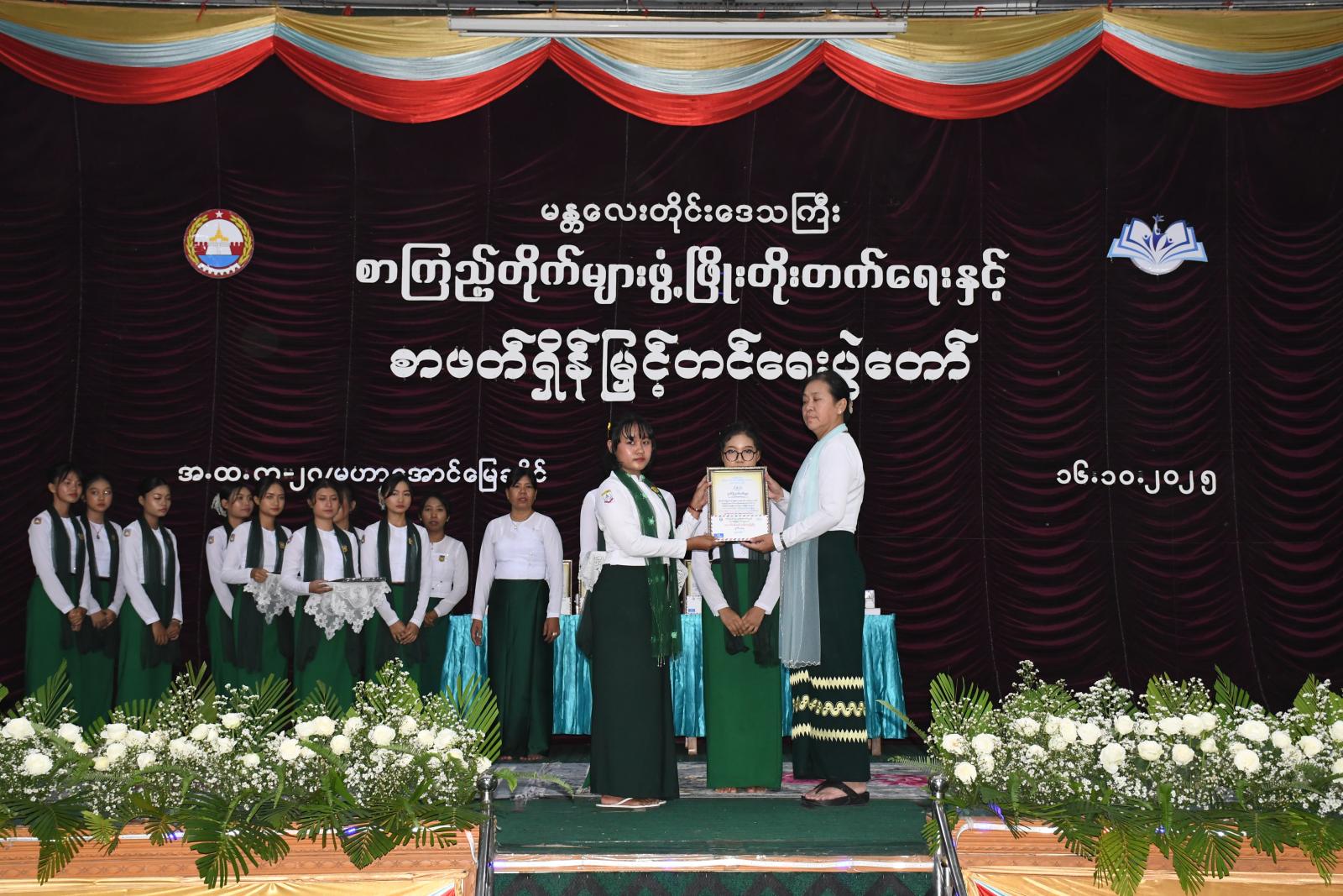မန္တလေးတိုင်းဒေသကြီး ပြည်ကြီးတံခွန်မြို့နယ် အထက(၂၇)အခြေခံပညာအထက်တန်းကျောင်း အောင်တံခွန်ခန်းမ၌ ယမန်နေ့ မွန်းလွဲ ၁ နာရီက စာကြည့်တိုက်များဖွံ့ဖြိုးတိုးတက်ရေးနှင့်စာဖတ်ရှိန်မြှင့်တင်ရေးပွဲတော်တွင် ဆုချီးမြှင့်ပွဲကျင်းပသည်။
