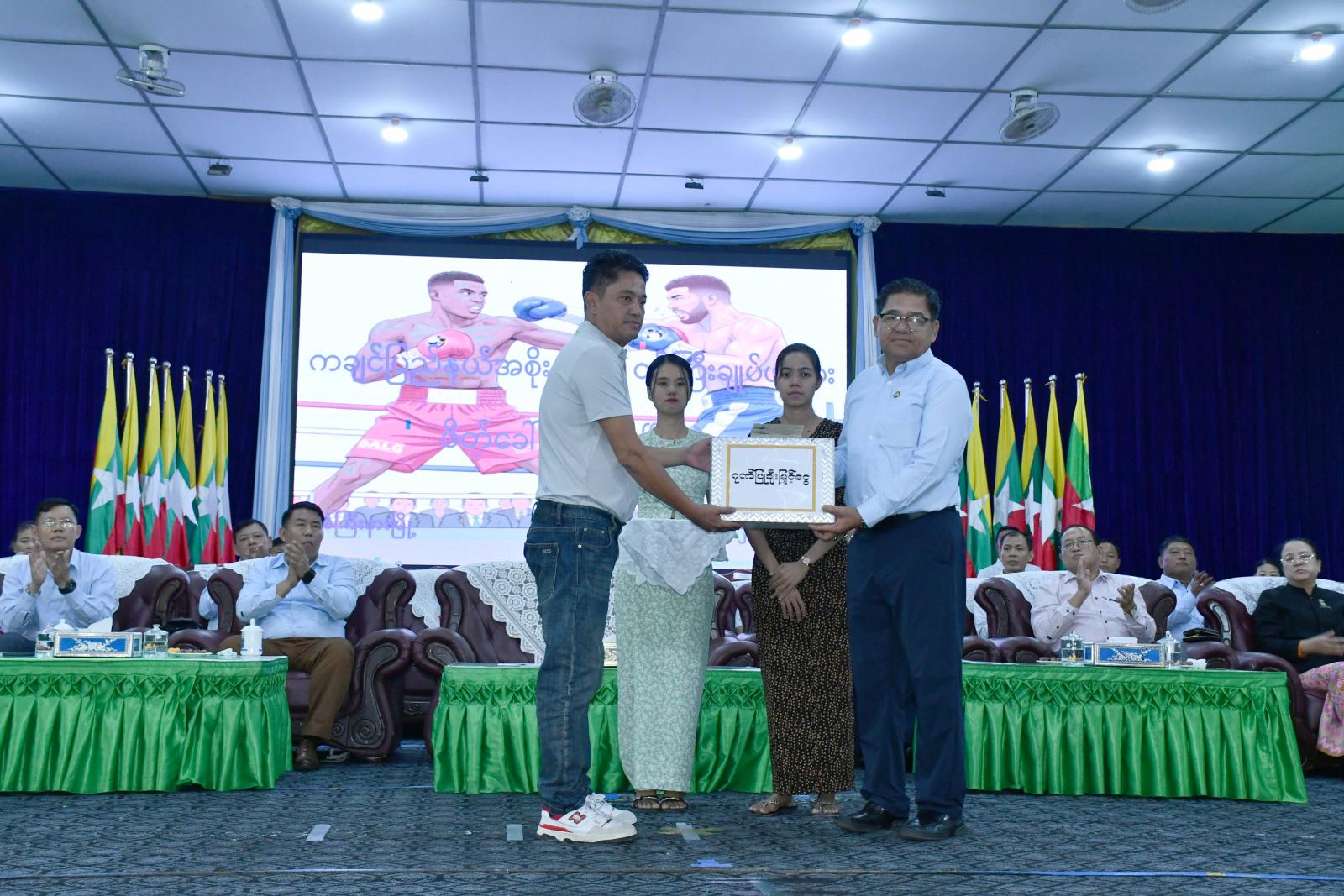 ယင်းနောက် ပြည်နယ်ဝန်ကြီးချုပ်နှင့် တာဝန်ရှိသူများသည် မြစ်ကြီးနားမြို့ ပြည်သူ့အားက စားကွင်းအတွင်းရှိ မိုးလုံလေလုံအားကစားခန်းမ၌ မျိုးဆက်သစ် လူငယ်လက်ဝှေ့ အားကစားသမားများပေါ်ထွန်းလာစေရေး ကျင်းပသည့် ၂၀၂၅ ခုနှစ် ပြည်နယ်ဝန်ကြီးချုပ်ဖလား ဖိတ်ခေါ် လက်ဝှေ့ပြိုင်ပွဲဖွင့်ပွဲသို့ တက်ရောက်သည်။ အခမ်းအနားတွင် ပြည်နယ်ဝန်ကြီးချုပ်က လက်ဝှေ့ပြိုင်ပွဲ အတွက် ချီးမြှင့်ထောက်ပံ့ငွေကျပ်သိန်း ၃၀ နှင့် လက်ဝှေ့ဆပ်ကော်မတီ တာဝန်ရှိသူများ၊ ပါဝင်ကူညီ ပံ့ပိုးပေးကြသူများအား ဂုဏ်ပြုမှတ်တမ်း လွှာများကို ပေးအပ်ချီးမြှင့်ခဲ့ပြီး ပြည်နယ်လက်ဝှေ့ဆပ်ကော်မတီမှ သင်ကြားလေ့ကျင့်ပေးလျက်ရှိသော လူငယ်လက်ဝှေ့သင်တန်းသား/ သင်တန်းသူများက လက်ဝှေ့လေ့ကျင့်ခန်းများဖြင့် သရုပ်ပြသမှုကို လည်းကောင်း၊ Grace အကအဖွဲ့က ကပြဖျော်ဖြေမှုကို လည်းကောင်း ကြည့်ရှုအားပေးခဲ့ကြပြီး လက်ဝှေ့ပြိုင်ပွဲ အဖွင့်ပွဲစဉ်အဖြစ် ဖြိုးဝေလင်း (မန်ခိန်)နှင့် မိုက်ကယ်ဇော်ခေါင်(ဒူကထောင်)တို့၏ ယှဉ်ပြိုင်ထိုးသတ်မှုကို နယ်စပ်ဒေသတိုင်းရင်းသားလူငယ်များ ဖွံ့ဖြိုးတိုးတက်ရေးသင်တန်းကျောင်းမှ ကျောင်းသူများ၊ လက်ဝှေ့ဝါသနာရှင်ပရိသတ်များနှင့်အတူ ကြည့်ရှုအားပေးခဲ့ကြကာ အနိုင်ရရှိသည့် လက်ဝှေ့အားကစားသမားအား ဂုဏ်ပြုဆုငွေများကို ပေးအပ်ချီးမြှင့်သည်။