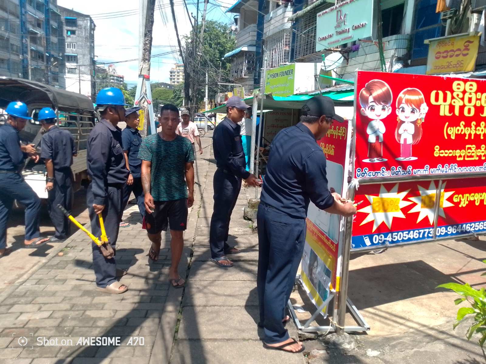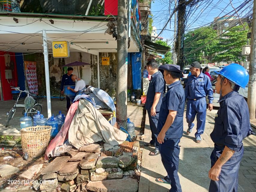 ပုဇွန်တောင်မြို့နယ် အမှတ်(၇)ရပ်ကွက်အတွင်း အထက်ပုဇွန်တောင်လမ်းရှိ လိုင်စင်ရှိ ဆိုင်/လုပ်ငန်းများမှ ကော်မတီပိုင်လမ်းနယ်အတွင်း ကျူးကျော်ခင်းကျင်းရောင်းချမှုမရှိရေးကို ယနေ့နံနက်ပိုင်းက လိုက်လံစစ်ဆေးခဲ့ကာ အထက်ပုဇွန်တောင်လမ်းရှိ ကော်မတီပိုင်လမ်းနယ်အတွင်း အဖီအစွယ်ကျူး၊ လမ်းနယ်ကျူးများအား ကျူးကျော်ခင်းကျင်းရောင်းချမှု မရှိစေရေးနှင့် လမ်းဘေးစျေးသည်များရောင်းချမှု မရှိစေရေး လိုက်လံစစ်ဆေး ဆောင်ရွက်ပေးခဲ့သည်။