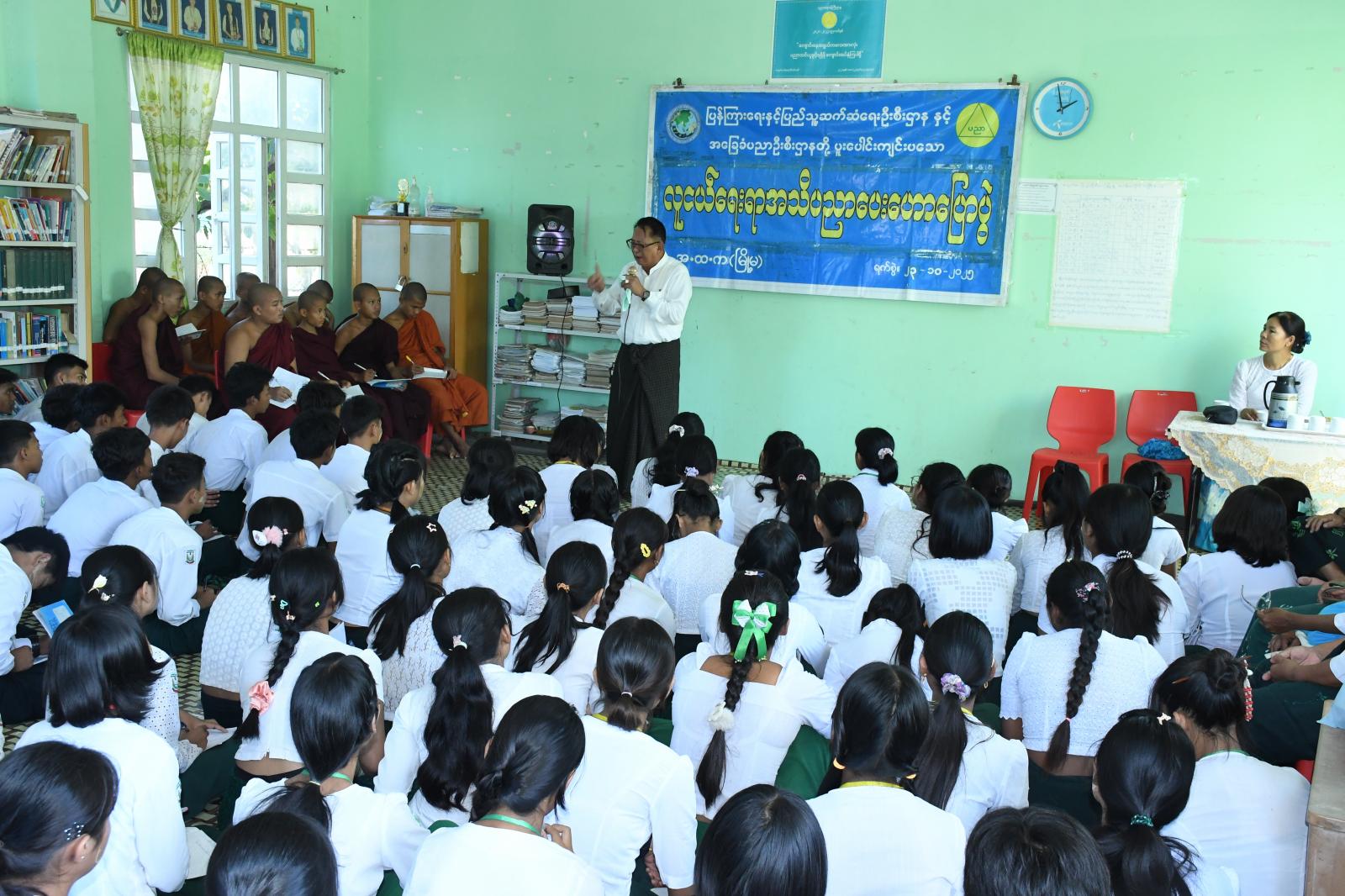 ကျောင်းသားလူငယ်များ ဗလငါးတန်နှင့်ပြည့်စုံပြီး ဘက်စုံဖွံ့ဖြိုးတိုးတက်စေရန်အတွက် အခြေခံပညာကျောင်းများ၌ လူငယ်ရေးရာအသိပညာပေးဟောပြောပွဲများကို ကျောက်ဆည်ခရိုင် ပြန်ကြားရေးနှင့်ပြည်သူ့ဆက်ဆံရေးဦးစီးဌာနမှ စဉ်ဆက်မပြတ်ကျင်းပပြုလုပ်လျက်ရှိရာ အောက်တိုဘာလ ၂၃ ရက်နေ့၊ မွန်းလွဲ(၁)နာရီက ကျောက်ဆည် မြို့မအခြေခံပညာအထက်တန်းကျောင်းတွင် လူငယ်ရေးရာ အသိပညာပေးဟောပြောပွဲ ပြုလုပ်ခဲ့ကြောင်း သိရသည်။