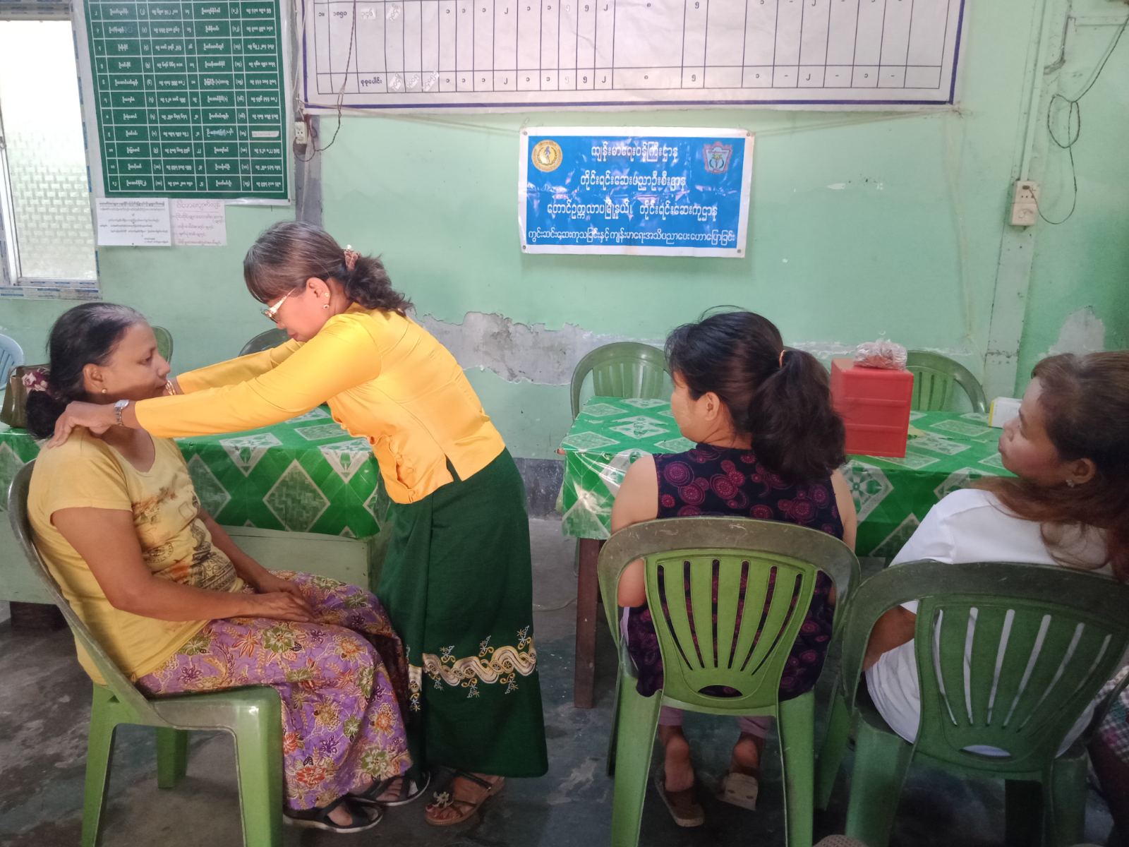 ရှေးဦးစွာခရိုင်တိုင်းရင်းဆေးမှူး ဒေါ်မာစီ၊ မြို့နယ်တိုင်းရင်းဆေးမှူး ဒေါ်စောကလျာမျိုးတို့ကမြို့နယ်အတွင်းရှိ ပြည်သူများအား ကျန်းမာရေးဆိုင်ရာ အသိပညာပေးခြင်း၊ လူအများဖြစ်တက်သော ကျန်းမာရေးဆိုင်ရာရောဂါများအား လက်တွေ့စမ်းသပ်ကုသပေးခြင်းများ ပြုလုပ် ဆောင်ရွက်ပေးခဲ့သည်။