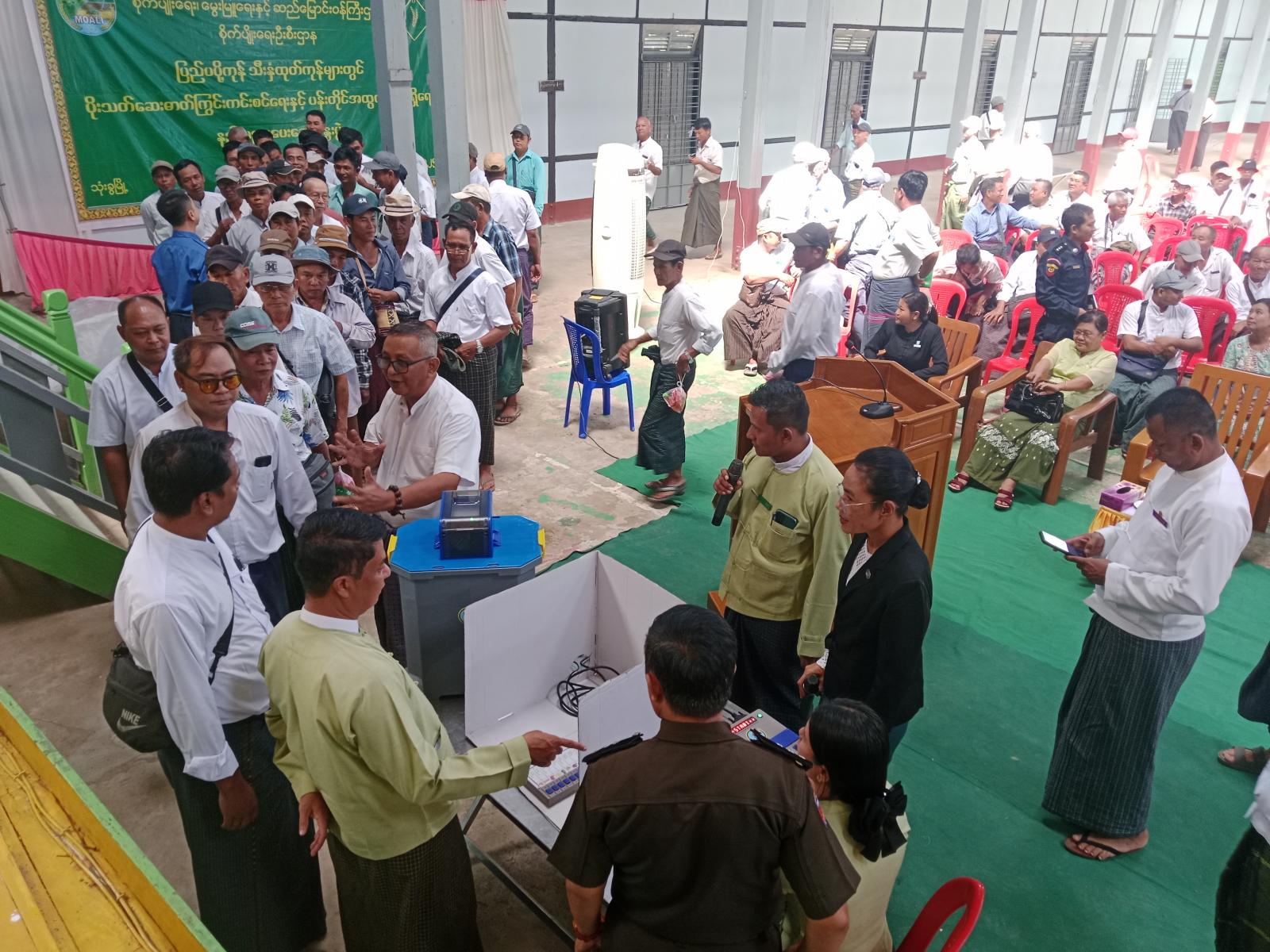 ထို့နောက် မြို့နယ်ပါတီစုံဒီမိုကရေစီ အထွေထွေရွေးကောက်ပွဲကာလ လုံခြုံရေးဆိုင်ရာကြီးကြပ်မှုကော်မတီအဖွဲ့ဝင် ဗိုလ်မှူးလင်းမောင်သက်က ရွေးကောက်ပွဲကာလအတွင်း လုံခြုံရေးဆိုင်ရာကိစ္စရပ်များကို ပြောကြားခဲ့သည်။ ထို့နောက် မြို့နယ်ရွေးကောက်ပွဲကော်မရှင်အဖွဲ့ခွဲဥက္ကဋ္ဌ ဦးသန်းလွင်က ရပ်ကွက်/ကျေးရွာကော်မရှင်အဖွဲ့ခွဲများနှင့် အုပ်ချုပ်ရေးမှူးများမှ မဲဆန္ဒရှင်များ ရာနှုန်းပြည့်မဲပေးနိုင်ရေး လှုံ့ဆော်ပေးရန် ပြောကြားခဲ့သည်။