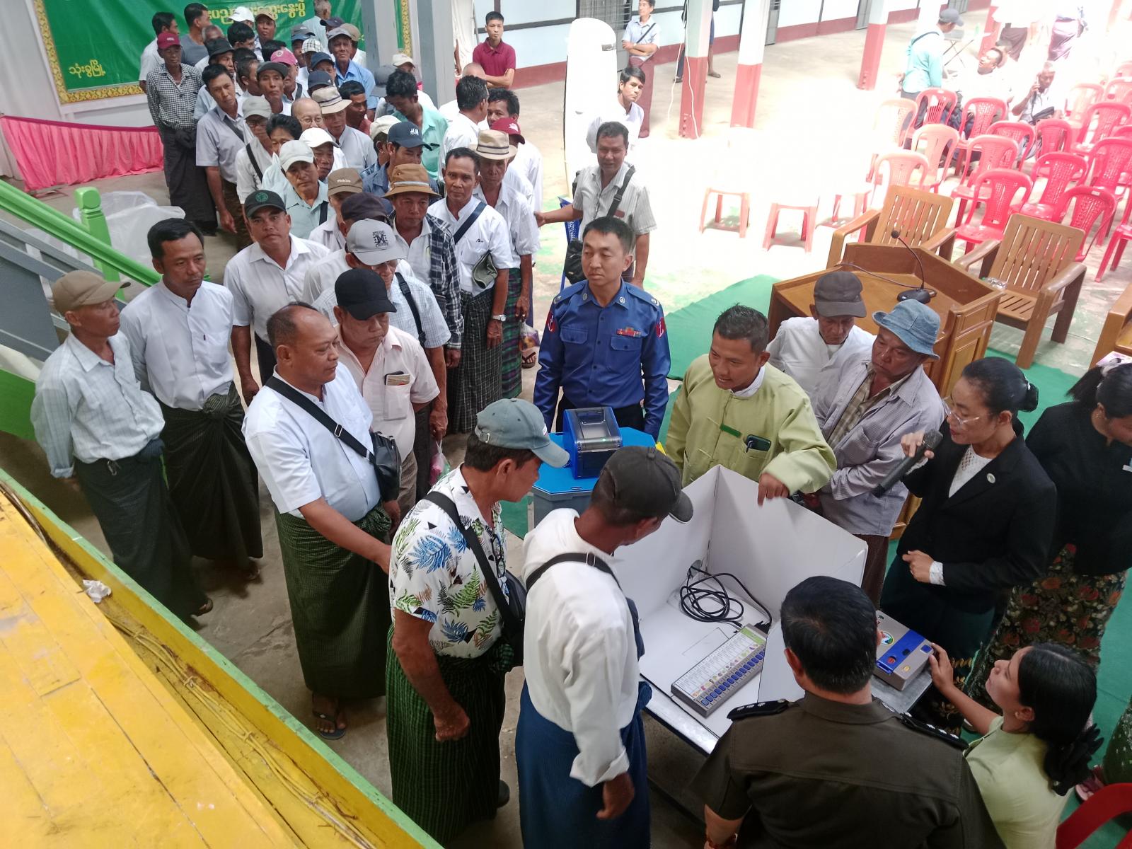 ဆက်လက်၍ ရွေးကောက်ပွဲကော်မရှင်အဖွဲ့ခွဲ အတွင်းရေးမှူး ဒေါ်ထွေးအိငယ်ငယ်အောင်က မဲပေးစက်နှင့်ပတ်သက်၍ ရှင်းလင်းပြောကြားပြီး အခမ်းအနားသို့ တက်ရောက်လာသူများက မြန်မာအီလက်ထရောနစ်ဆိုင်ရာ မဲပေးစက် စမ်းသပ်မဲပေးခြင်းများကို လက်တွေ့သရုပ်ပြသခြင်းများ ဆောင်ရွက်ခဲ့ကြောင်း သိရသည်။