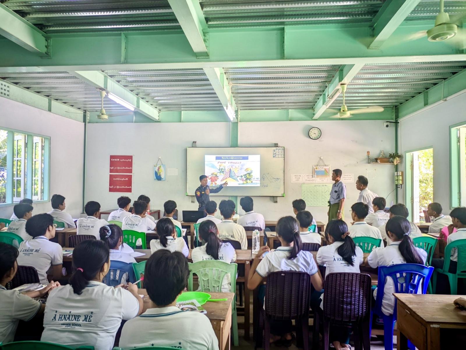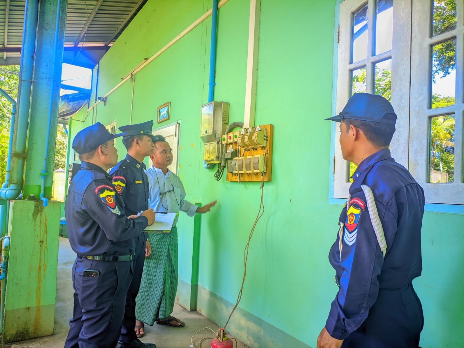 ရန်ကုန်တိုင်းဒေသကြီး၊ တိုက်ကြီးမြို့နယ်၊ အဖျောက်မြို့ရှိ အနှိုင်းမဲ့ကိုယ်ပိုင်အထက်တန်းကျောင်း၌ မီးဘေးလုံခြုံရေးစစ်ဆေးခြင်း၊ မီးဘေးကြိုတင်ကာကွယ်ရေး အသိပညာပေးဟောပြောခြင်းနှင့် မီးငြှိမ်းသတ်ခြင်း လက်တွေ့သရုပ်ပြခြင်းကို ယနေ့ နံနက်ပိုင်းက ဆောင်ရွက်သည်။