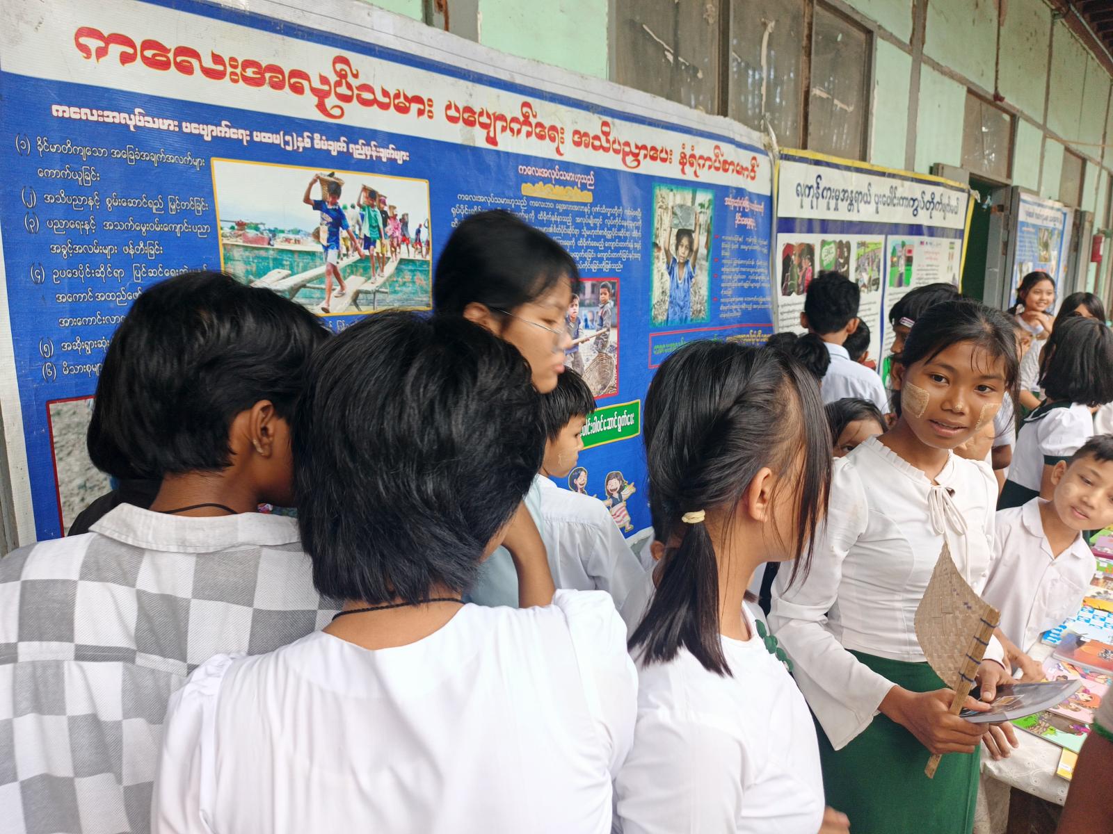 ထို့နောက် မြို့နယ်ပြန်ကြားရေးနှင့်ပြည်သူ့ဆက်ဆံရေးဦးစီးဌာနမှ ဝန်ထမ်းများက ကလေး အလုပ်သမားပပျောက်ရေးဆိုင်ရာ အသိပညာပေးလက်ကမ်းစာစောင်များကို ဖြန့်ဝေပေးခဲ့ပြီး အသိပညာပေးနံရံကပ်စာစောင်များနှင့် သုတ၊ ရသစာအုပ်စာစောင်များကို ပြသခဲ့ရာ ကျောင်းသား၊ ကျောင်းသူများက စိတ်ပါဝင်စားစွာ လေ့လာကြည့်ရှုခဲ့ကြကြောင်း သိရသည်။