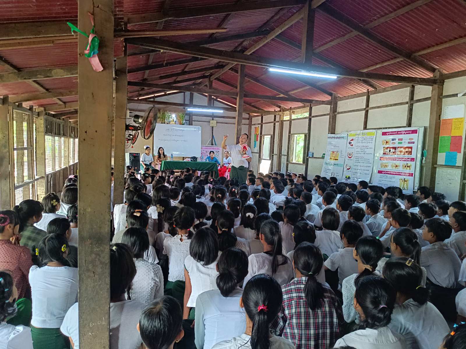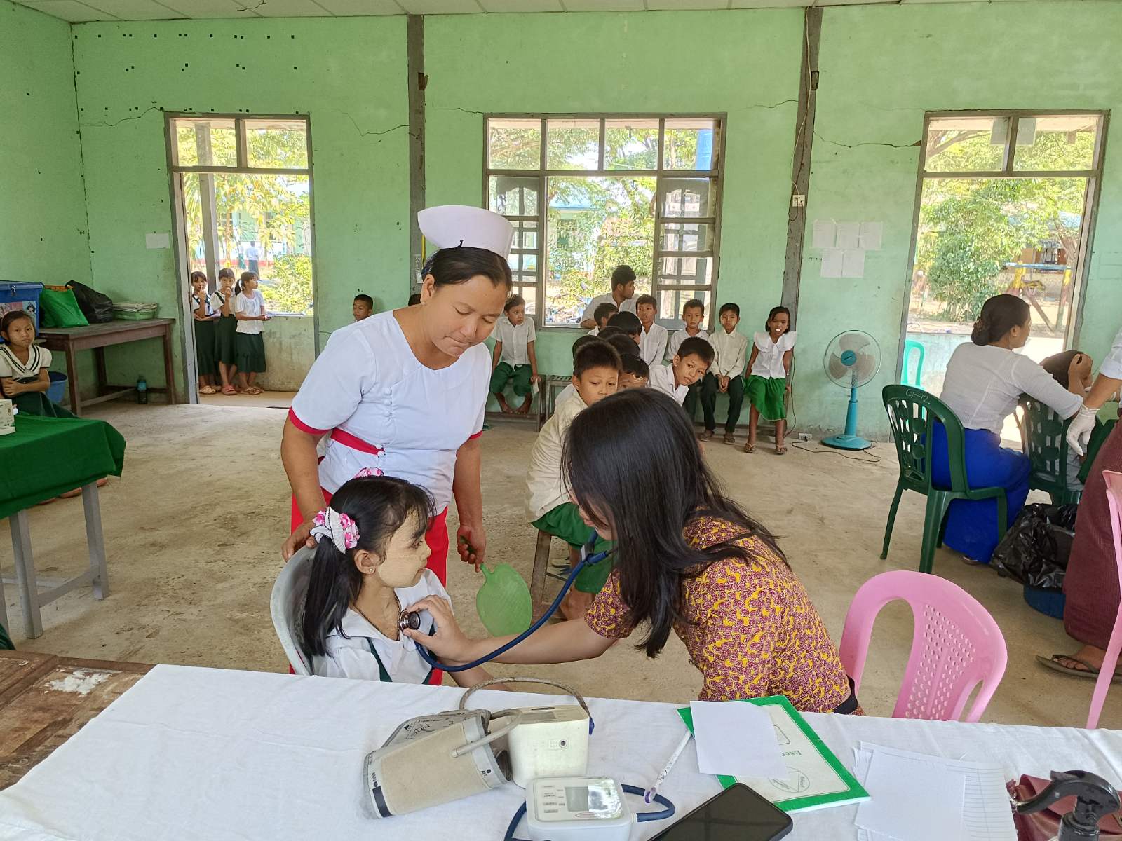 ထိုသို့ကွင်းဆင်း၍ ကျောင်းကျန်းမာရေးလုပ်ငန်းများ ဆောင်ရွက်ပေးရာတွင် မြို့နယ်ကုသရေးဌာနမှ သွားဘက်ဆိုင်ရာ ဆရာဝန် ဒေါက်တာတင်နိုင်နှင့် ကျောင်းကျန်းမာရေးအဖွဲ့မှ ကျန်းမာရေးမှူး ဒေါ်ကြည်ကြည်လွင်နှင့် အဖွဲ့သည် ကျောင်းသား/သူများအားသွားနှင့်ခံတွင်းစစ်ဆေးခြင်း၊ အထွေထွေကျန်းမာရေးစစ်ဆေးပေးခြင်း၊ စနစ်တကျသွားတိုက်နည်းကို သရုပ်ပြလေ့ကျင့် သင်ကြားပေးခြင်း၊ သန့်လေးသန့်၊ ဝမ်းပျက်ဝမ်းလျှောရောဂါ၊ ဆေးလိပ်သောက်ခြင်းအန္တရာယ်အကြောင်း၊ သွားနှင့်ခံတွင်းသွေးလွန်တုပ်ကွေးရောဂါနှင့် အကြောင်းတို့ကို ကျန်းမာ ရေးအသိပညာပေးဟောပြောခြင်းများ ဆောင်ရွက်ခဲ့ပြီး ကျောင်းသား/ သူ (၈၂) ဦးအား သွားကျန်းမာရေးစောင့်ရှောက်မှုပေးခြင်း၊ (၇) ဦးအား သွားပိုးပေါက်ဖာခြင်း၊ (၂၁)ဦးအား သွားနှုတ်ပေးခဲ့ကြောင်း သိရှိရသည်။