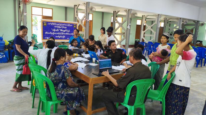 ရန်ကုန်တိုင်းဒေသကြီး၊ တိုက်ကြီးမြို့နယ်အတွင်းသို့ ရောက်ရှိနေထိုင်လျက်ရှိသော ယာယီနေရပ်စွန့်ခွာပြည်သူများအား အိမ်ထောင်စုလူဦးရေစာရင်းနှင့် နိုင်ငံသားစိစစ်ရေးကတ်ပြားများ ဆောင်ရွက်ပေးခြင်းကို ယနေ့နံနက်ပိုင်းက မြို့နယ်အထွေထွေအုပ်ချုပ်ရေးဦးစီးဌာန အစည်းအဝေးခန်းမ၌ ဆောင်ရွက်ပေးသည်။