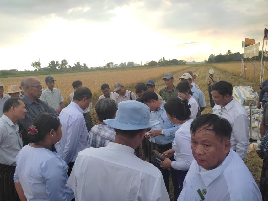 အဆိုပါအခမ်းအနားသို့ စိုက်ပျိုးရေးမွေးမြူရေးနှင့်ဆည် မြောင်းဝန်ကြီးဌာန၊ ဒုတိယဝန်ကြီး ဒေါက်တာတင်ထွဋ်၊ စိုက်ပျိုးရေးဦးစီးဌာနမှ ဒုတိယတိုင်းဒေသကြီးဦးစီးမှူး ဦးရန်နိုင်ဝင်း၊ ကြေးတိုင်နှင့်မြေစာရင်းဦးစီးဌာနမှ ဒုတိယတိုင်းဒေသကြီးဦးစီးမှူး ဦးနီဝင်းအောင်၊ ခရိုင် စီမံခန့်ခွဲရေးနှင့် အုပ်ချုပ်ရေးကော်မတီအဖွဲ့၀င်၊ ဒုတိယဗိုလ်မှူးကြီးတင်ကိုကို၊ မြို့နယ်စီမံခန့်ခွဲရေးနှင့် အုပ်ချုပ်ရေးကော်မတီအဖွဲ့၀င်ဗိုလ်မှူးချမ်းမြေ့ဦး၊ တိုင်း/ခရိုင်မြေ၊ မျိုး၊ ပိုးတာဝန်ခံများ၊ ခရိုင်/မြို့နယ်စိုက်ပျိုးရေးကြီးကြပ်မှုကော်မတီအဖွဲ့ဝင်များ၊ စိုက်ပျိုးရေးဦးစီးဌာနမှဝန်ထမ်းများ၊ ကျေးရွာအုပ်စုအုပ်ချုပ်ရေးမှူးများနှင့် တောင်သူများ၊ စုစုပေါင်းအင်အား(၅၀)ကျုံကန် ကျေးရွာအုပ်စုရှိ မိုးစပါးဧက (၁၀.၀၀)စံပြကွက်၌ တောင်သူ ဦးဝင်းမြင့် ပိုင်ဆိုင်သော ကွင်းအမှတ် (၆၃၈B)၊ ဦးပိုင်အမှတ်(၃၄)၊ ဧရိယာ(၅.၀၀)ဧကတွင် ဘောင်စနစ်ဖြင့် ပျိုးထောင် စိုက်ပျိုးထားသော မှော်ဘီ-၃ စပါးမျိုးအား Y methad နည်းစံကွက်ရိတ်သိမ်းခဲ့ရာ အစိုအထွက်နှုန်း (၁၂၇.၅၀) တင်း၊ အခြောက်အထွက်နှုန်း (၁၂၄.၂၅ )တင်း ထွက်ရှိကြောင်း သိရသည်၊၊