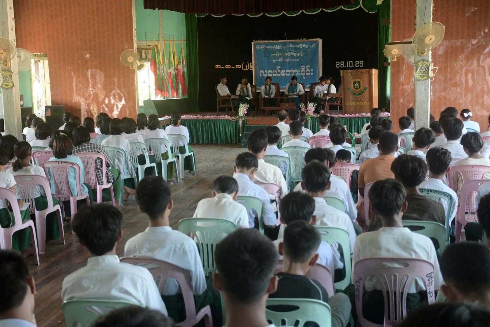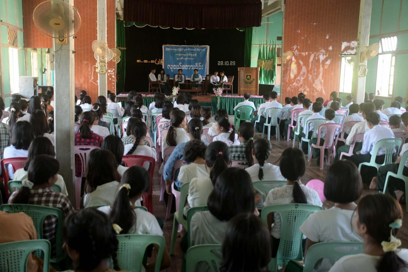 မန္တလေးတိုင်းဒေသကြီး၊ မြင်းခြံခရိုင် ပြန်ကြားရေးနှင့်ပြည်သူ့ဆက်ဆံရေးဦးစီးဌာနနှင့် အခြေခံပညာဦးစီးဌာနတို့ပူးပေါင်း၍ ကျင်းပသော လူငယ်စကားဝိုင်းကို ယမန်နေ့ နေ့လယ် ၁ နာရီ အချိန်က အဆိုပါကျောင်းခန်းမတွင် ကျင်းပခဲ့ကြောင်း သိရသည်။
