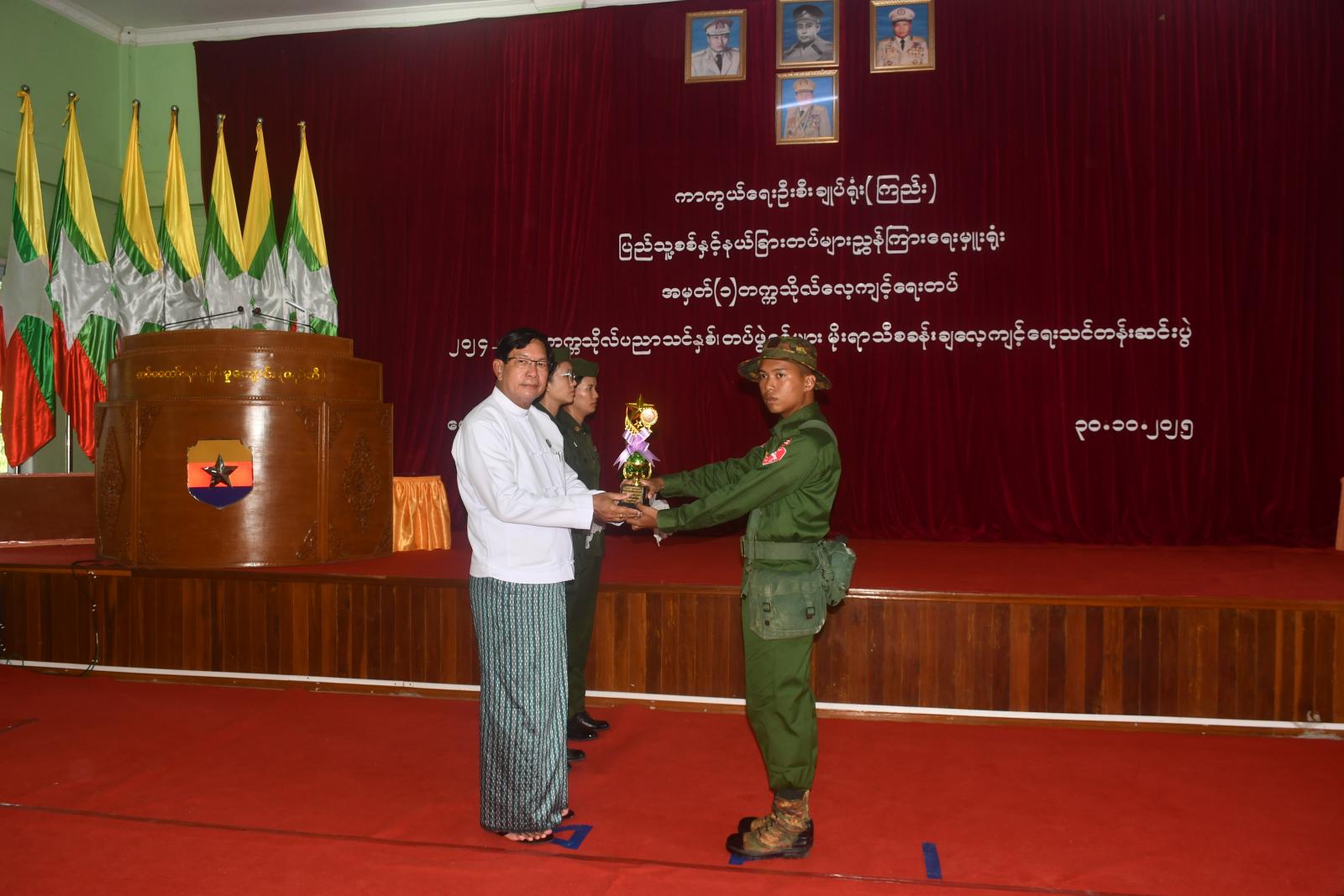 ထို့နောက် ရန်ကုန်တိုင်းဒေသကြီး ဝန်ကြီးချုပ် ဦးစိုးသိန်းက စံပြသင်တန်းသား/သင်တန်းသူ ဆုရရှိ သည့် တပ်ဖွဲ့ဝင် ကျောင်းသား၊ ကျောင်းသူများအား လည်းကောင်း၊ ရန်ကုန်တိုင်းစစ်ဌာနချုပ် တိုင်းမှူး ဗိုလ်ချုပ် ပြည့်စုံလင်းက အခြေခံစစ်ပညာနှင့် တန်းမြင့်စစ်ပညာ သင်တန်းများမှ သေနတ်ပစ် ထူးချွန်ရရှိသည့် တပ်ဖွဲ့ဝင် ကျောင်းသား၊ ကျောင်းသူများအား လည်းကောင်း ဆုများ အသီးသီး ချီးမြှင့်ခဲ့ကြသည်။