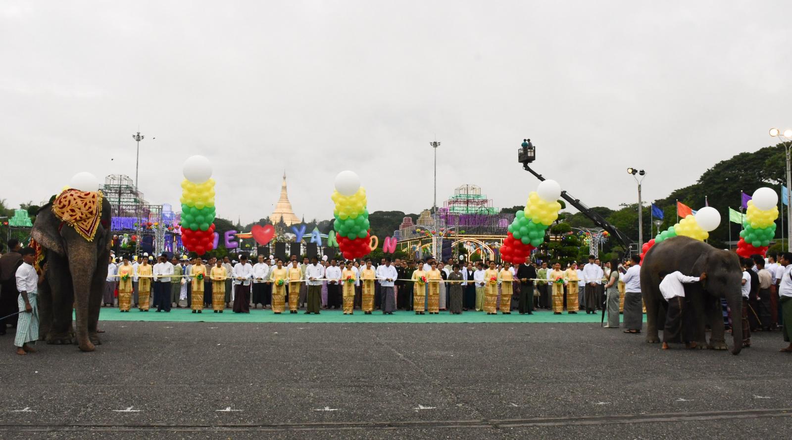 ရန်ကုန်တိုင်းဒေသကြီး ၂၀၂၅ခုနှစ် တန်ဆောင်တိုင် MSMEs ဈေးရောင်းပွဲတော်နှင့် ဂီတဖျော်ဖြေပွဲဖွင့်ပွဲအခမ်းအနားကို ယနေ့ နံနက်ပိုင်းက ရန်ကုန်မြို့၊ ပြည်သူ့ရင်ပြင်တွင် ကျင်းပရာ ရန်ကုန်တိုင်းဒေသကြီး ဝန်ကြီးချုပ်ဦးစိုးသိန်း၊ ရန်ကုန်တိုင်းဒေသကြီး တရားလွှတ်တော် တရားသူကြီးချုပ် ဒေါ်စန္ဒာသွယ်၊ တိုင်းဒေသကြီးအစိုးရအဖွဲ့ဝင်များ၊ ဌာနဆိုင်ရာတာဝန်ရှိသူများ၊ UMFCCI နှင့်ညီနောင်အသင်းများမှ တာဝန်ရှိသူများ၊ စက်မှုဇုန်အသီးသီးမှ တာဝန်ရှိသူများ၊ စက်မှုလုပ်ငန်းရှင်များ၊ MSMEs လုပ်ငန်းရှင်များ၊ အသေးစား စက်မှုလက်မှုလုပ်ငန်းရှင်များ၊ စစ်ဘက်နယ်ဘက်မှတာဝန်ရှိပုဂ္ဂိုလ်များ၊ တိုင်းရင်းသား၊ တိုင်းရင်းသူများနှင့် တာဝန်ရှိသူများ တက်ရောက်ကြသည်။