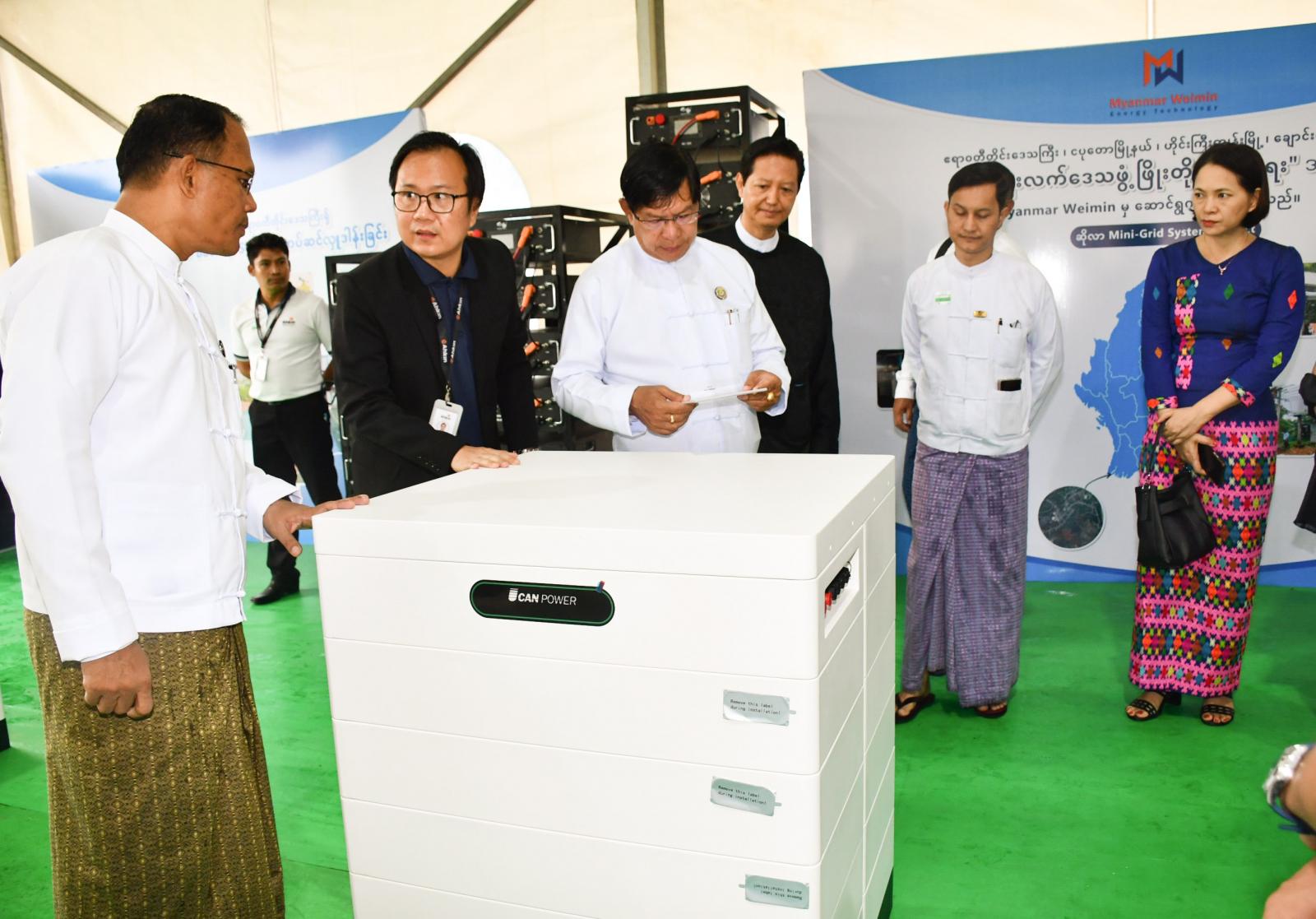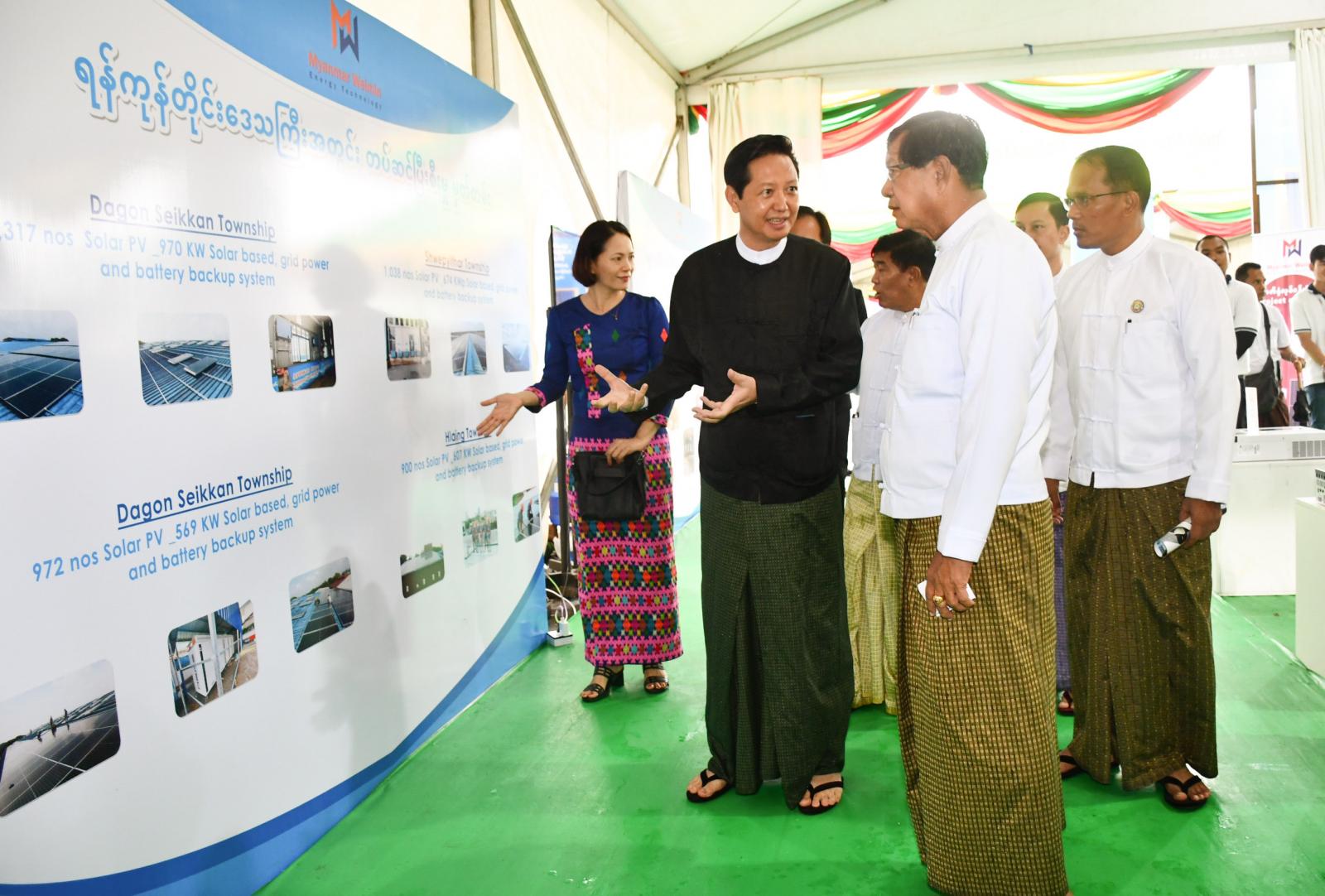 ယင်းနောက် တိုင်းဒေသကြီးဝန်ကြီးချုပ်နှင့်တာဝန်ရှိသူများက ဈေးဆိုင်ခန်းများနှင့် နေရောင်ခြည်စွမ်းအင်သုံးထုတ်ကုန်ပစ္စည်းများအား လှည့်လည်ကြည့်ရှုအားပေးကြသည်။
