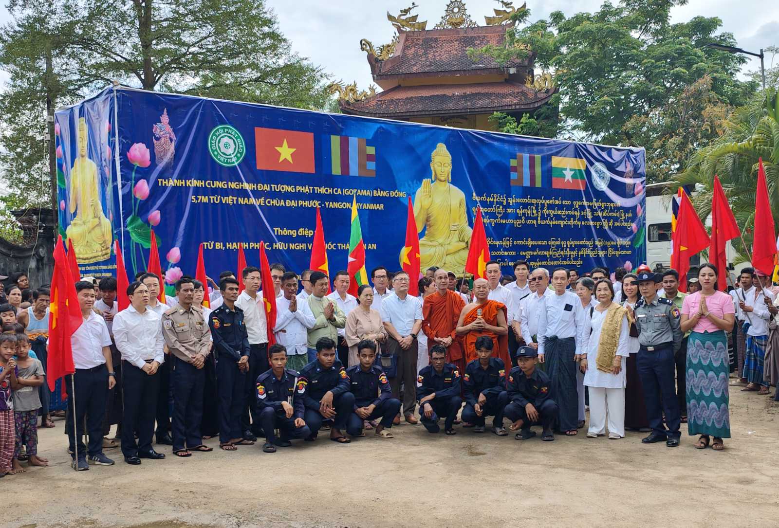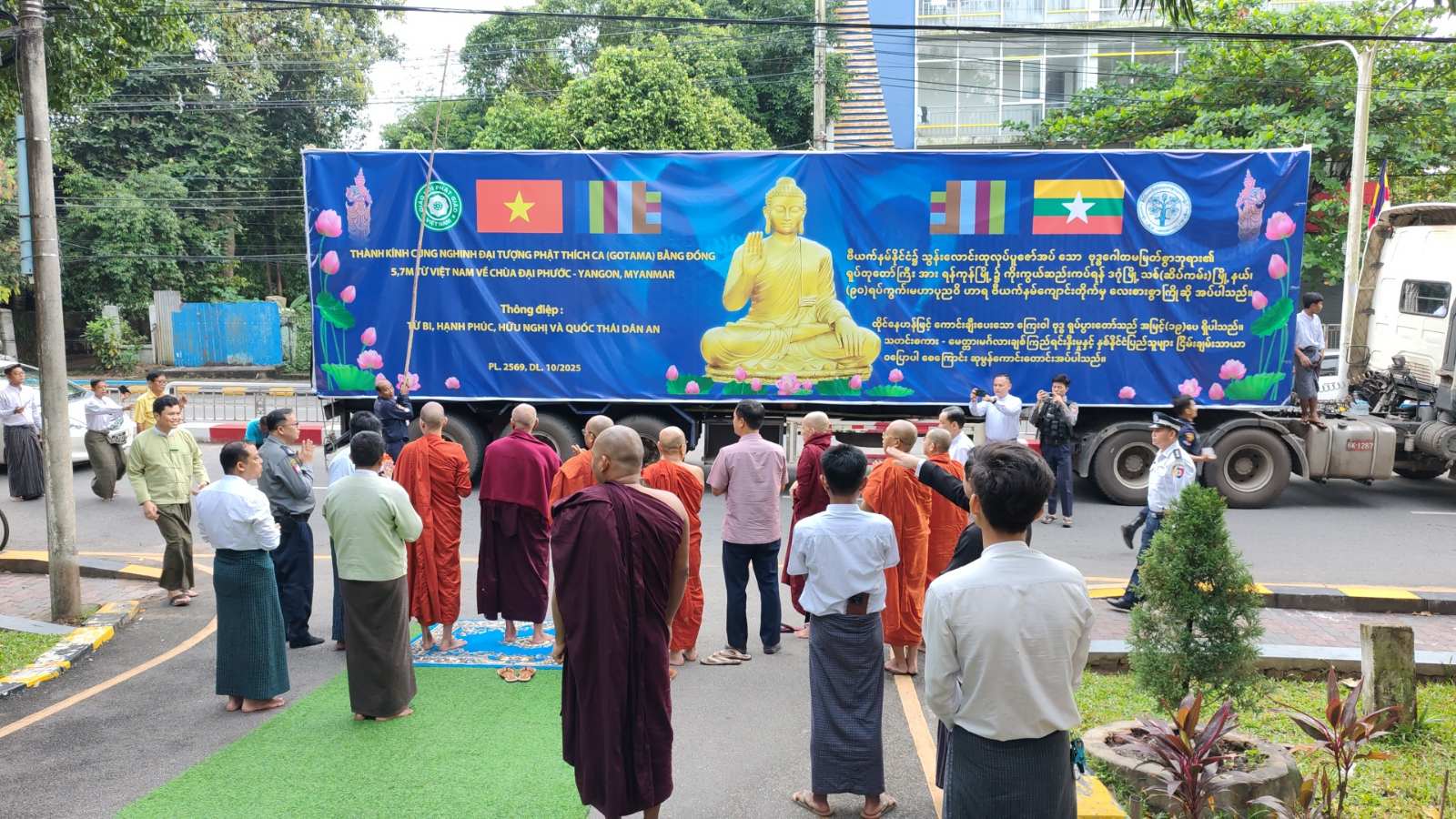 ရန်ကုန်တိုင်းဒေသကြီး၊ ဒဂုံမြို့သစ်ခရိုင်၊ ဒဂုံမြို့သစ်(ဆိပ်ကမ်း)မြို့နယ်၊ အမှတ်(၉၀) ရပ်ကွက်၊ ရမ္မာဝတီလမ်းရှိ မဟာပုညဝိဟာရ(ဗီယက်နမ်)ကျောင်းတိုက်သို့ ဗီယက်နမ်-မြန်မာ သာသနာပြုလုပ်ငန်းစဉ်အရ ဗီယက်နမ်နိုင်ငံတွင် သွန်းလောင်းထုလုပ်ပူဇော်အပ်သော ဉာဏ်တော် အမြင့် ၁၉ ပေ၊ အလေးချိန် ၈ တန်ရှိ ထိုင်တော်မူကြေးသွန်းဗုဒ္ဓ ရုပ်ပွားတော်မြတ်ကြီး၏ အစိတ်အပိုင်းများ ထည့်သွင်းထားသည့် ပေ ၄၀ ကုန်သေတ္တာတစ်လုံးအား ရန်ကုန်တိုင်းဒေသကြီး အစိုးရအဖွဲ့၏ လမ်းညွှန်ကြီးကြပ်မှုဖြင့် သီလဝါအပြည်ပြည်ဆိုင်ရာ ဆိပ်ကမ်းမှ ထုတ်ယူပင့်ဆောင်ခဲ့ရာ သန်လျင်မြို့ မင်းကျောင်း ပထမပြန်စာသင်တိုက်မှ ဆရာတော် သံဃာတော်များက ဗုဒ္ဓရုပ်ပွားတော်ကြီးအား ဖူးမြော်ခဲ့ကြသည်။