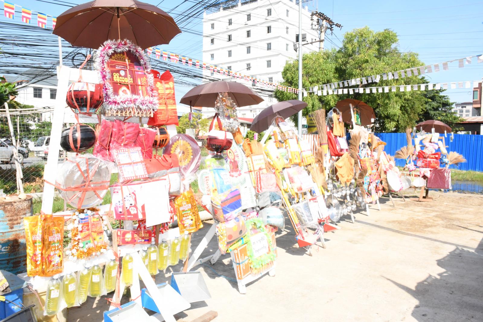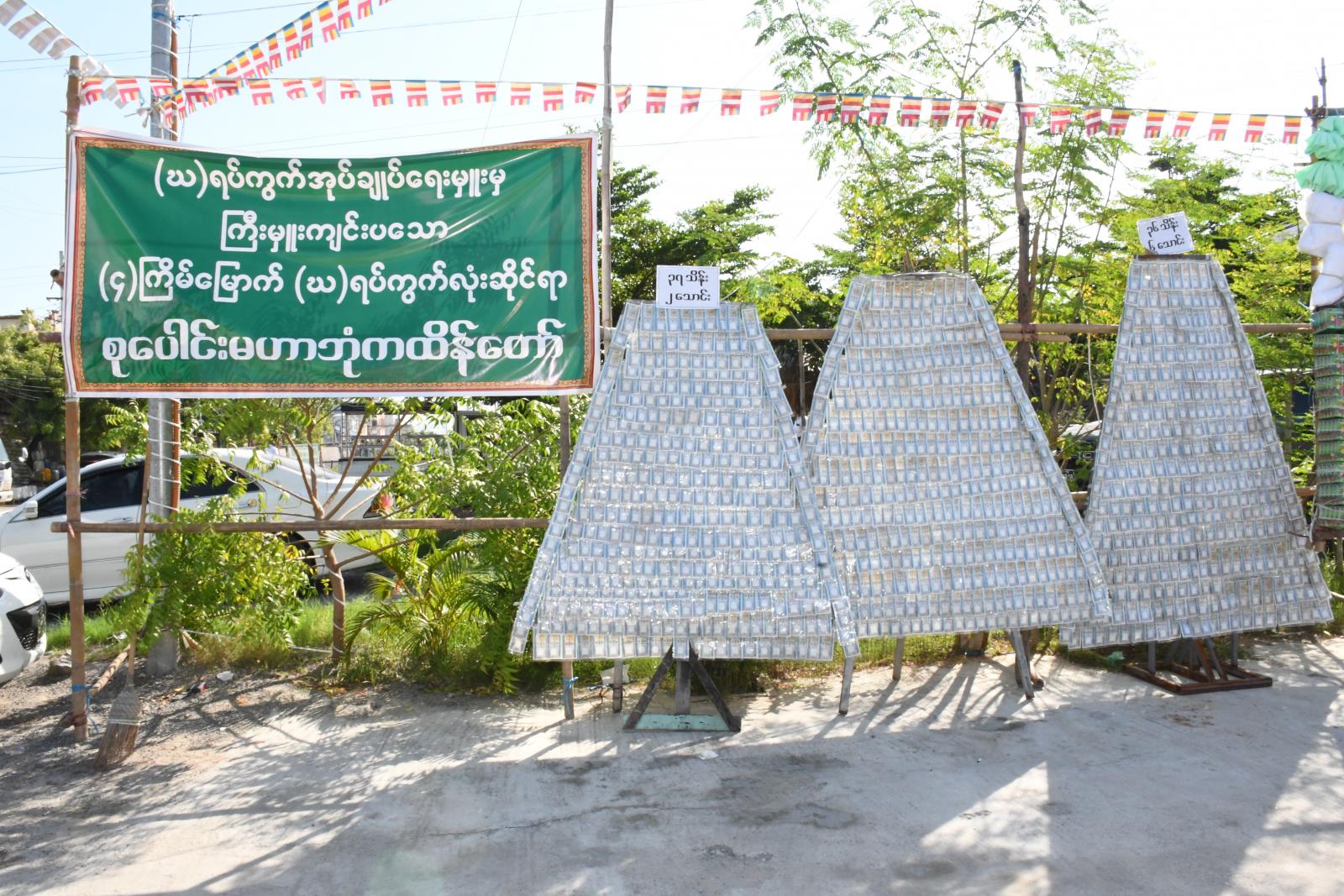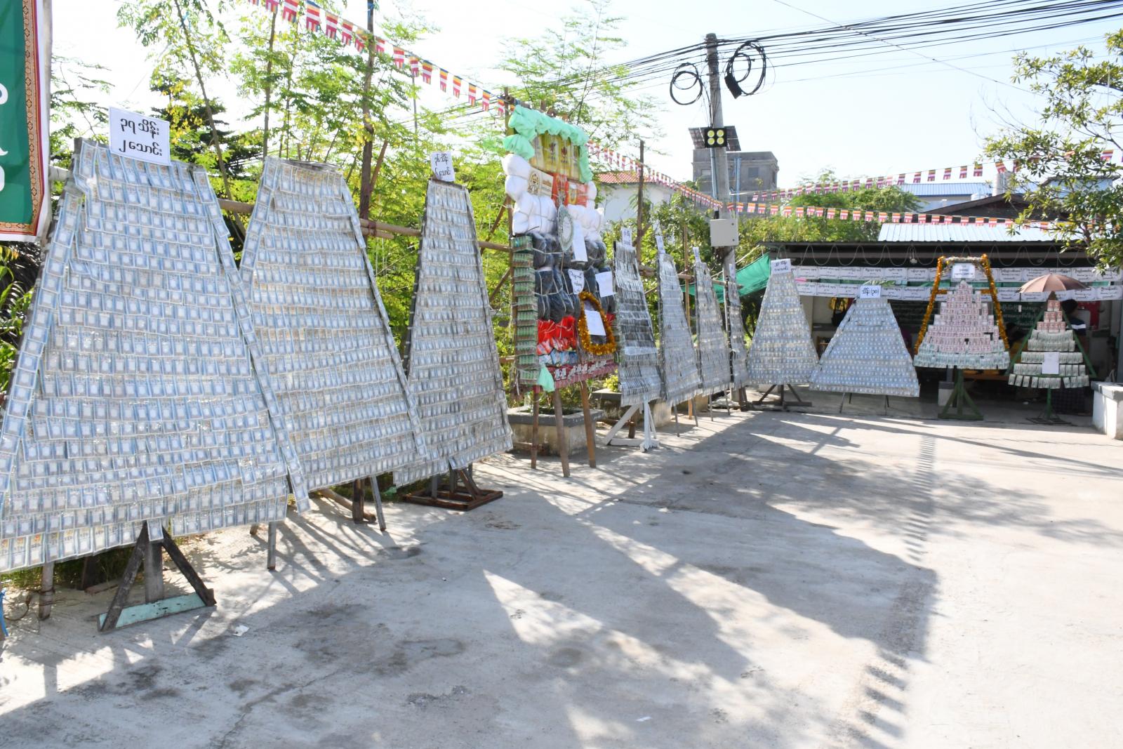 အဆိုပါ မဟာဘုံကထိန်ပွဲတွင် ပင့်သံဃာတော် (၁၅)ပါးဖြင့် ရေစက်ချတရားနာ၍ ပင့်သံဃာတော် တစ်ပါးလျှင် ငွေ၁သိန်းကျပ်နှင့်လှူဖွယ်ပစ္စည်းများ ဆပ်ကပ်လှူဒါန်းခဲ့သည်။ ယင်းနောက် ဘုံကထိန်ပွဲတော်အတွက် အဘက်ဘက်မှ ပါဝင်လှူဒါန်းပေးကြသော အလှူရှင်များကို ဂုဏ်ပြုမှတ်တမ်းလွှာများပေးအပ်ခဲ့ပြီး ယင်းဘုံကထိန်ပွဲတော်တွင် အလှူငွေ ငွေသားကျပ် သိန်းသုံးရာတစ်ဆယ့်ကျော်နှင့်လှူဖွယ်ပစ္စည်းများကို တံခွန်တိုင်ရပ်ကွက် ဓမ္မဂုဏ်ရည်ကျောင်း၊ ဆရာတော် ဦးဇနိန္ဒိထံ လှူဒါန်းပို့ဆောင်သွားမည်ဖြစ်ကြောင်း သိရသည်။