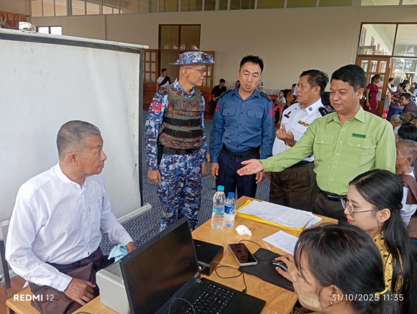 ပန်းခင်းစီမံချက်(၃)ဖြင့် နိုင်ငံသားစိစစ်ရေးကတ်ပြားများနှင့် Biometric ကွင်းဆင်းပြုလုပ်ပေးရာတွင် မြို့နယ်စီမံခန့်ခွဲရေးနှင့်အုပ်ချုပ်ရေးကော်မတီဥက္ကဋ္ဌ ဦးဇော်မျိုးဝင်းနှင့်အဖွဲ့ဝင်များက လာရောက်ကြည့်ရှုအားပေးခဲ့ကြောင်း သိရသည်။